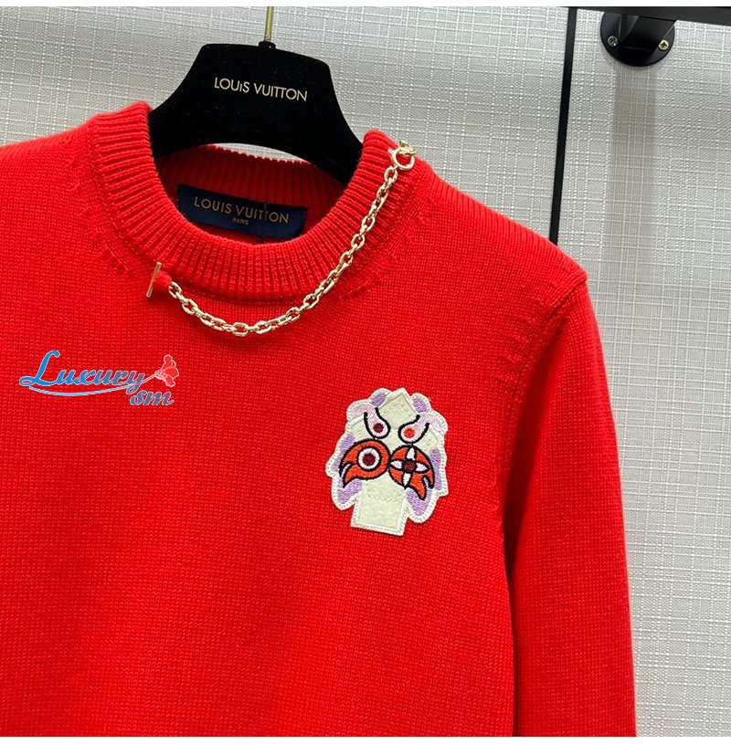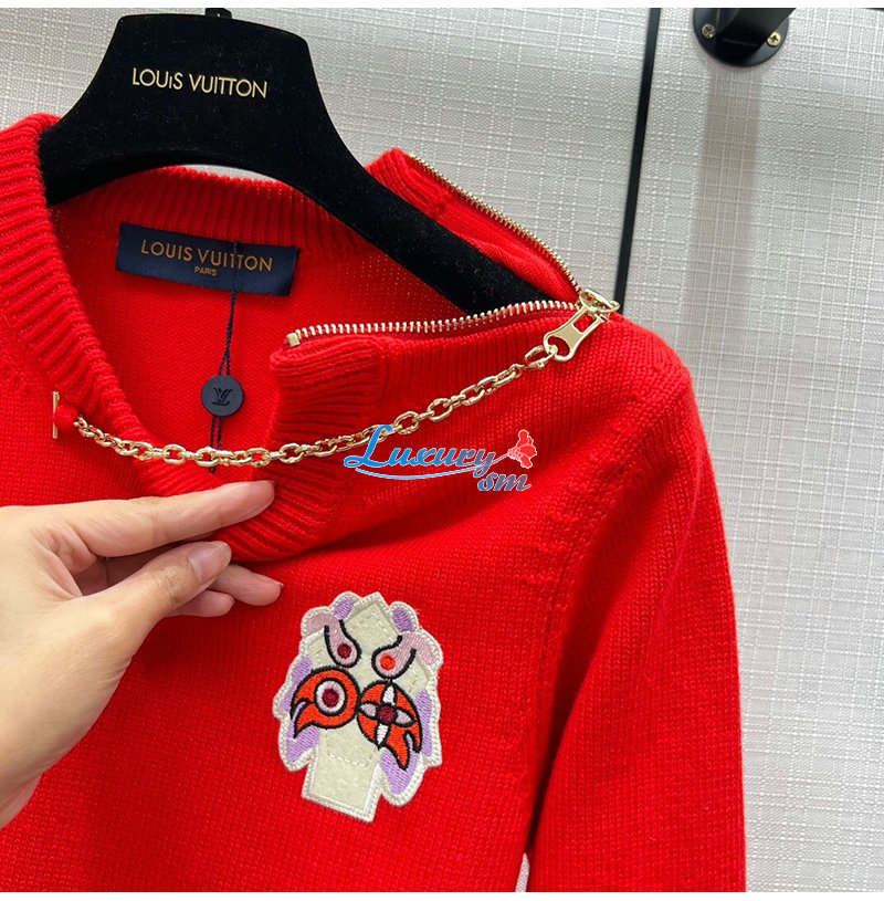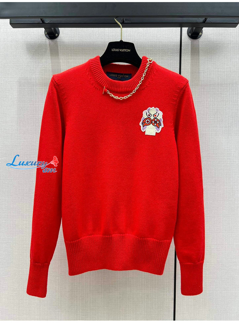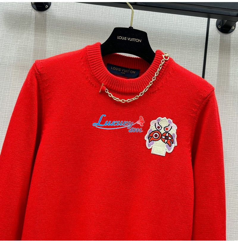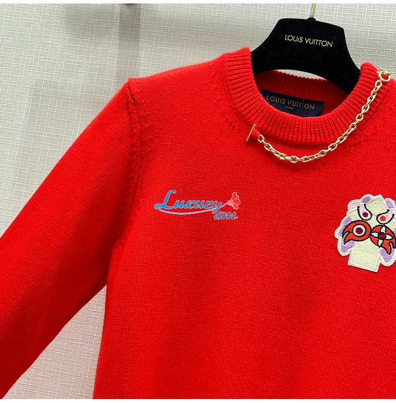 LOUIS VUITTON-01215 루이비통 레드 메탈 체인 장식 스웨터 여성용