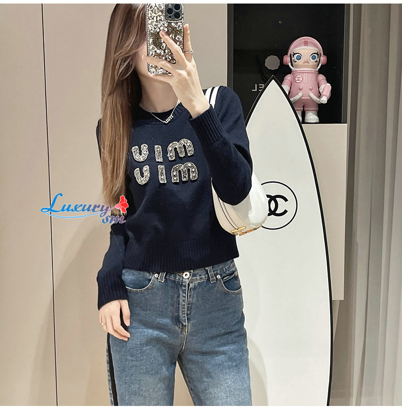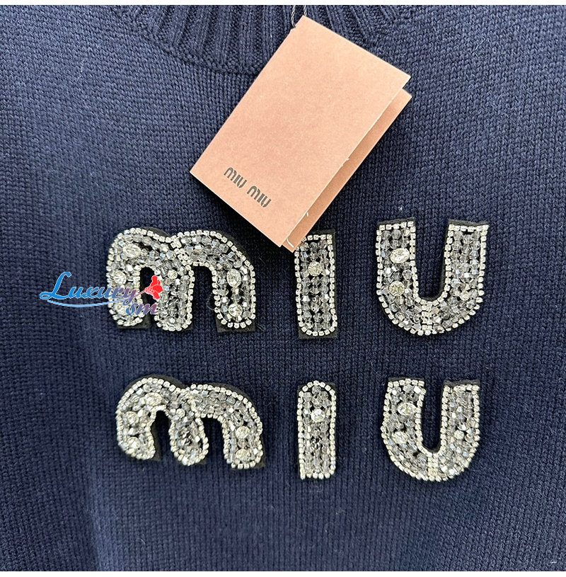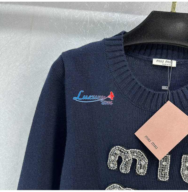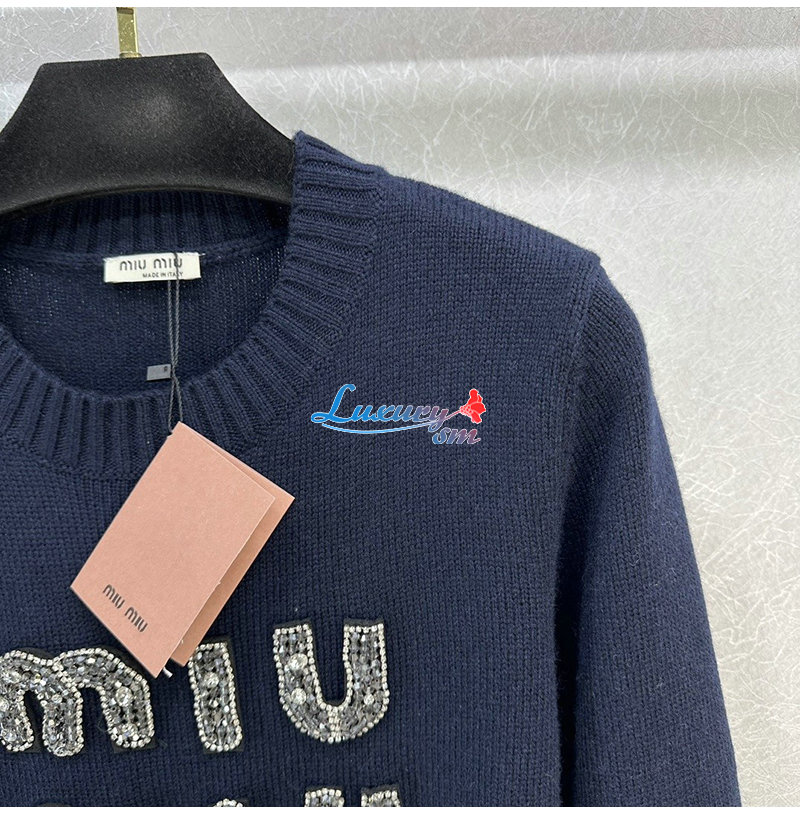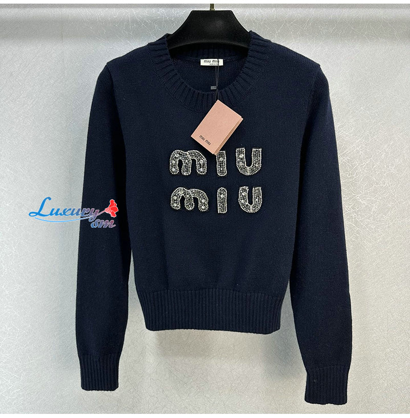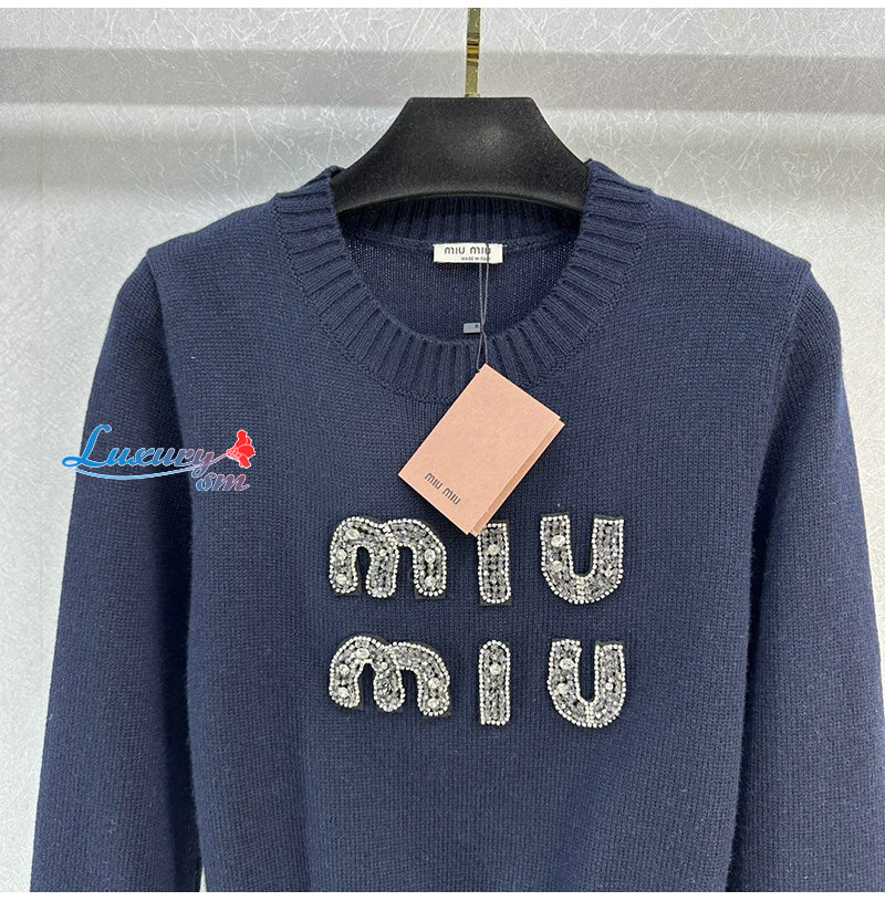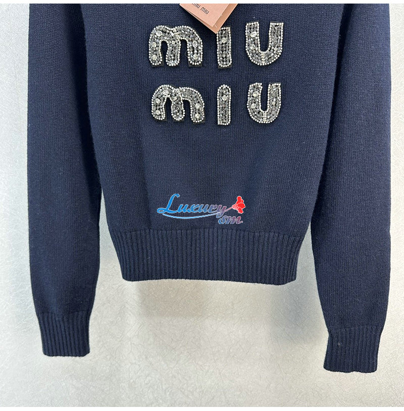 MIUMIU-01217 미우미우 네이비 크리스탈 장식 스웨터 여성용