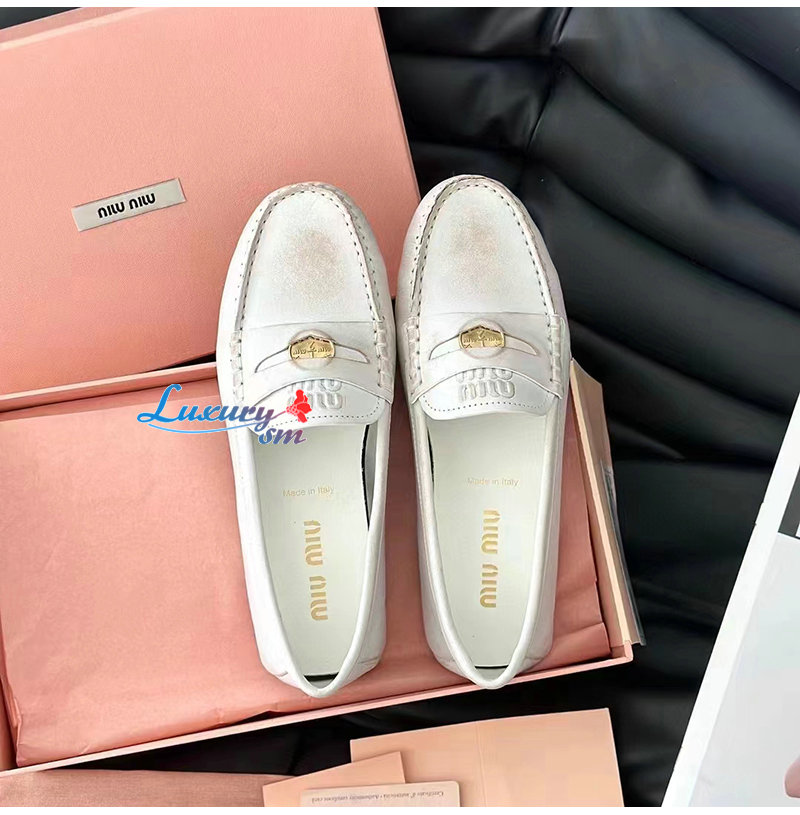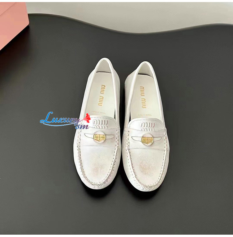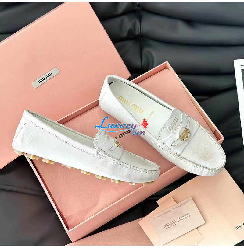 MIUMIU-5D773D 미우미우 화이트 가죽 페니 로퍼 여성용