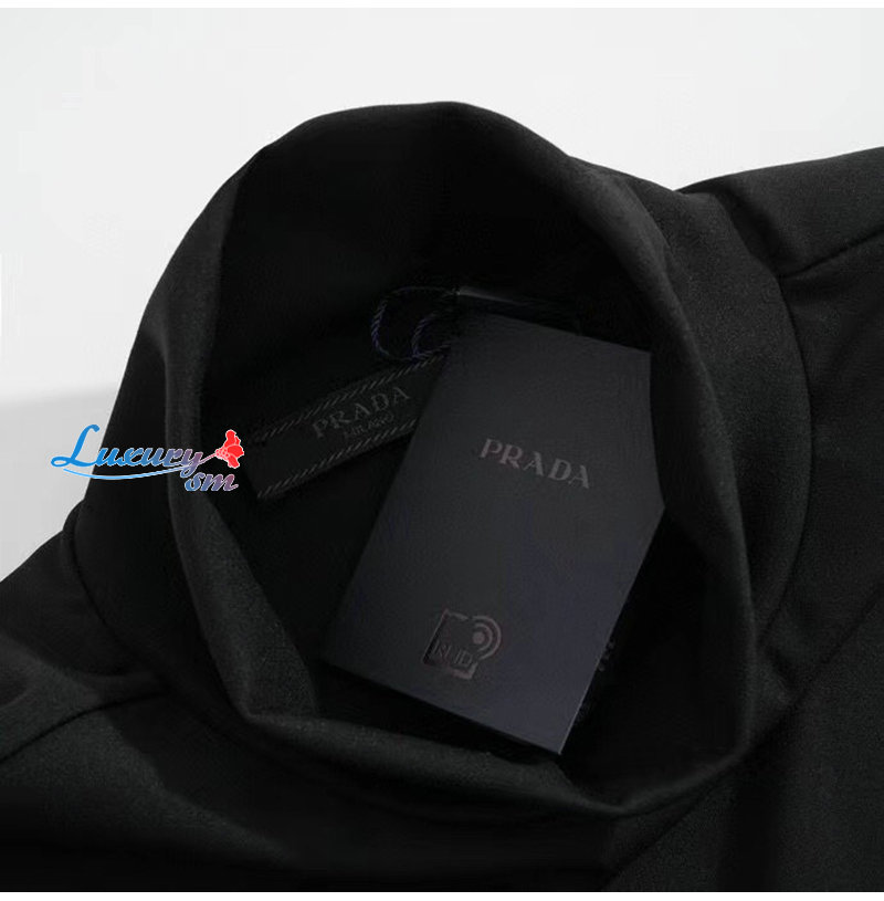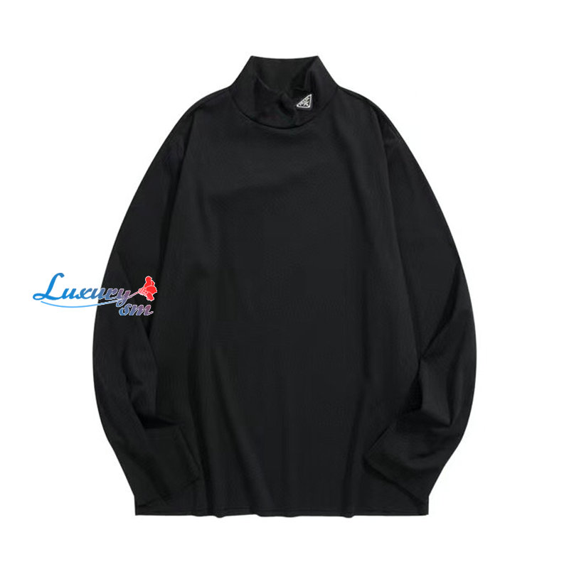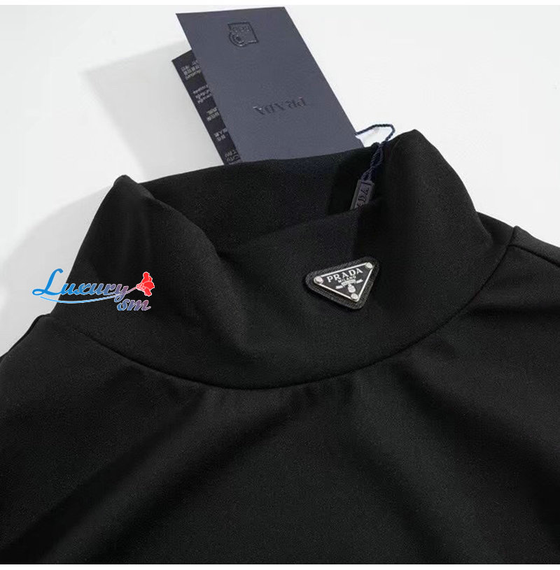 PRADA-012622 프라다 블랙 트라이앵글 로고 목폴라 티셔츠 남여공용