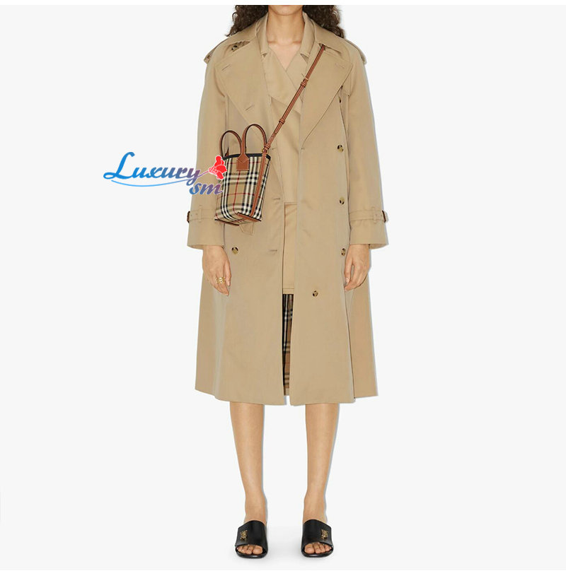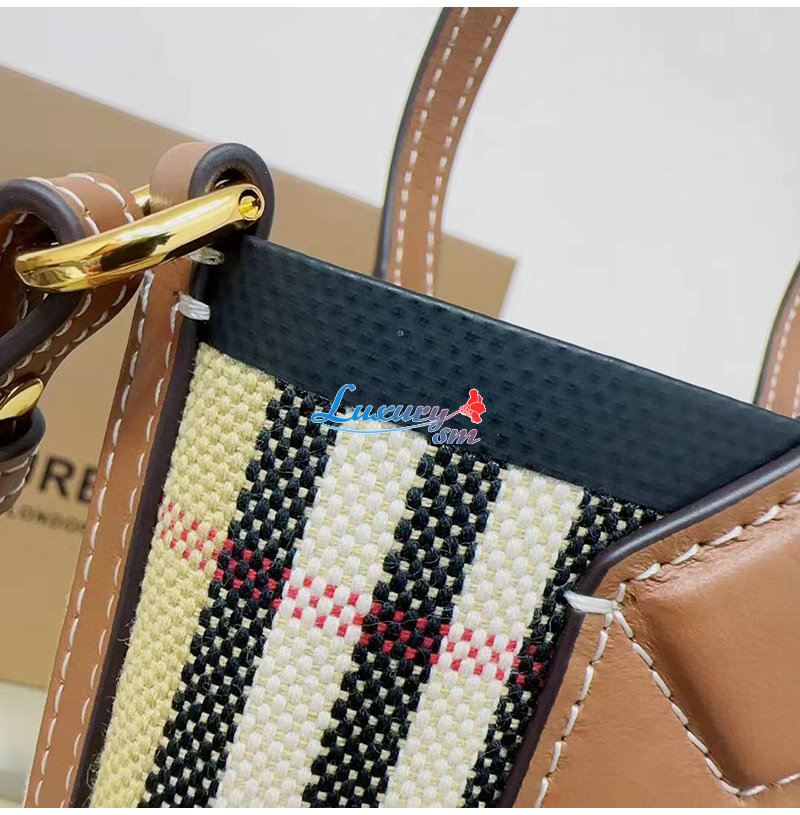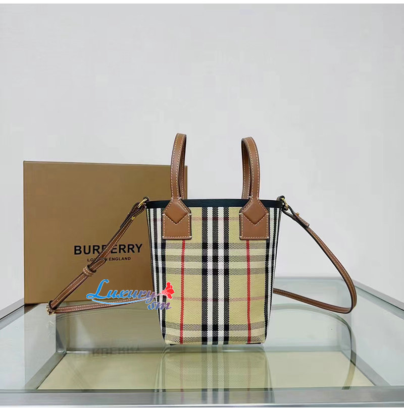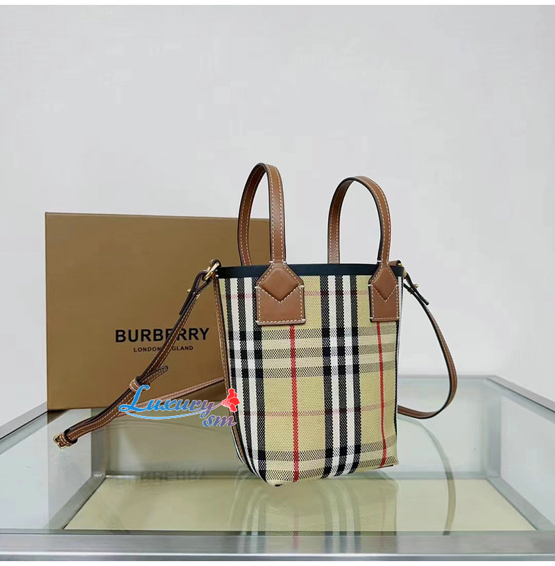 버버리 체크 면 캔버스 소재의 컴팩트한 토트