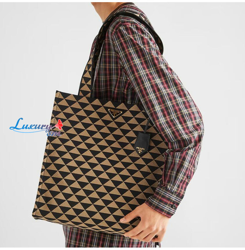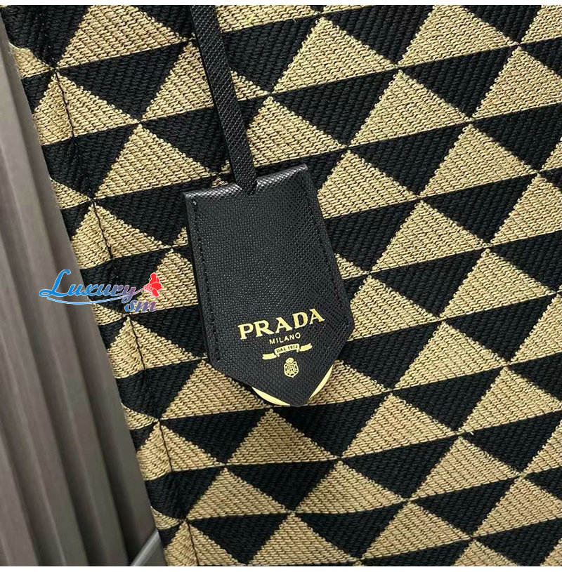 [스페셜오더]PRADA-2VG107 프라다 블랙/베이지 자수 패브릭 심볼 토트 백