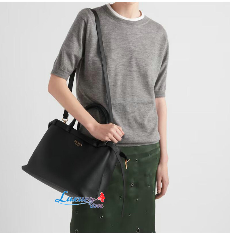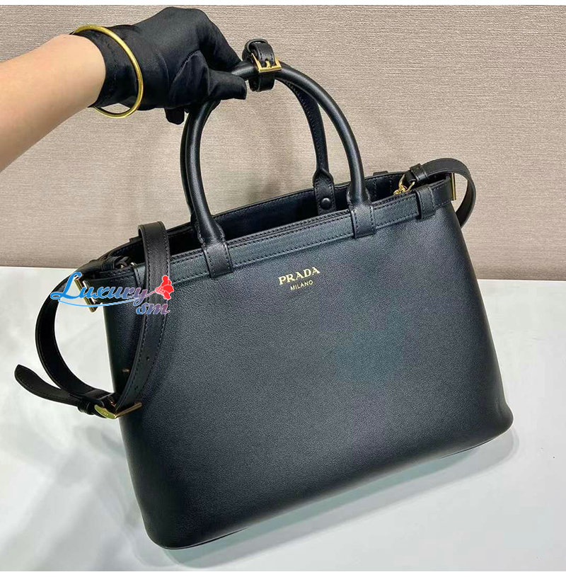 [스페셜오더]PRADA-1BA417 프라다 블랙 버클 미디엄 가죽 핸드백