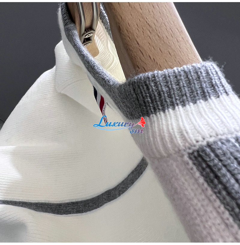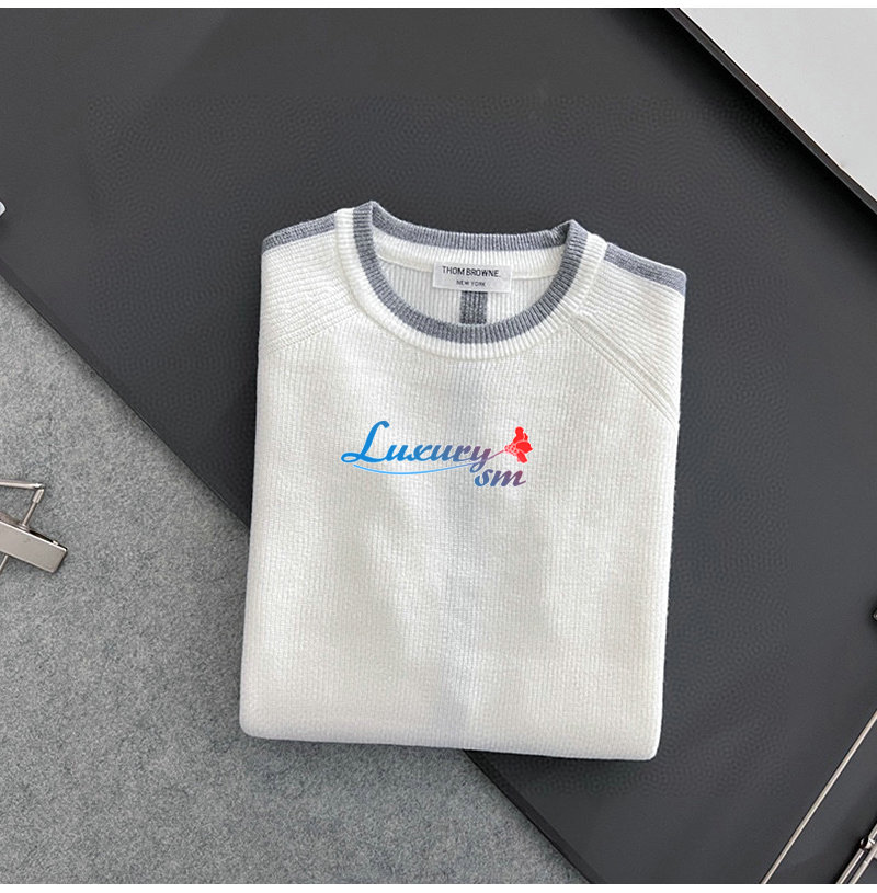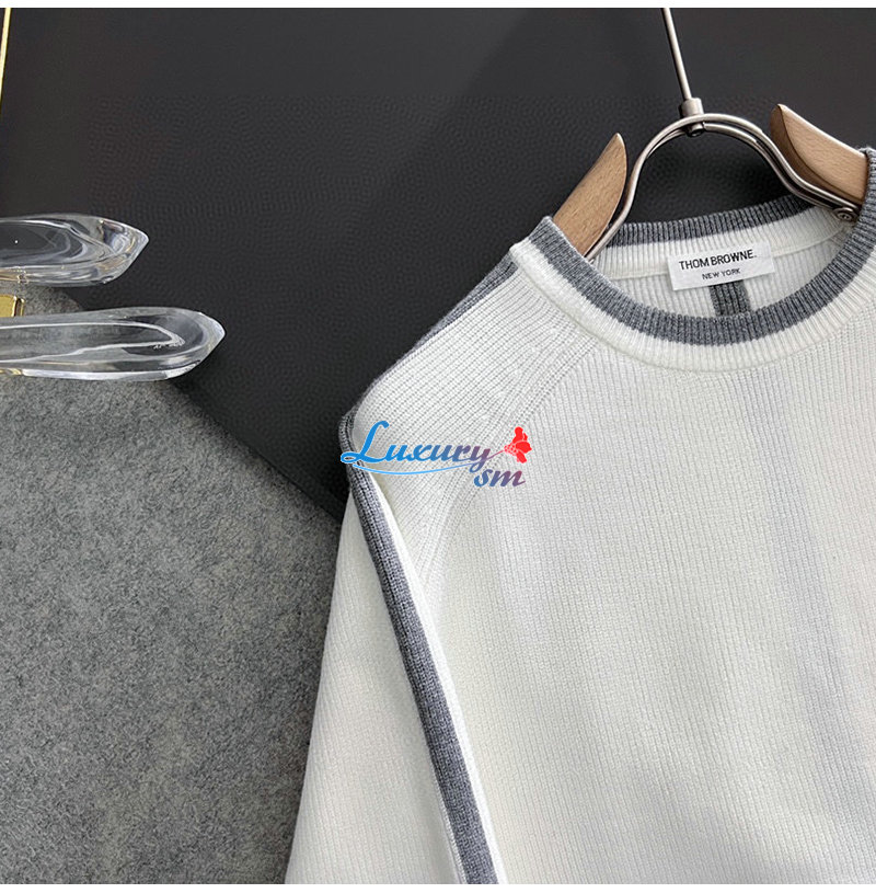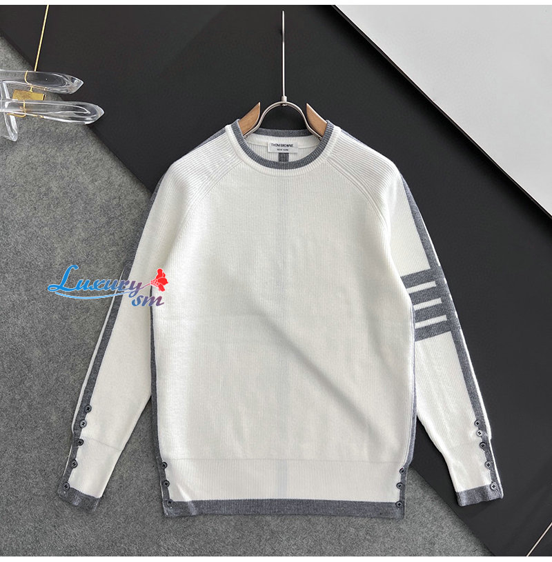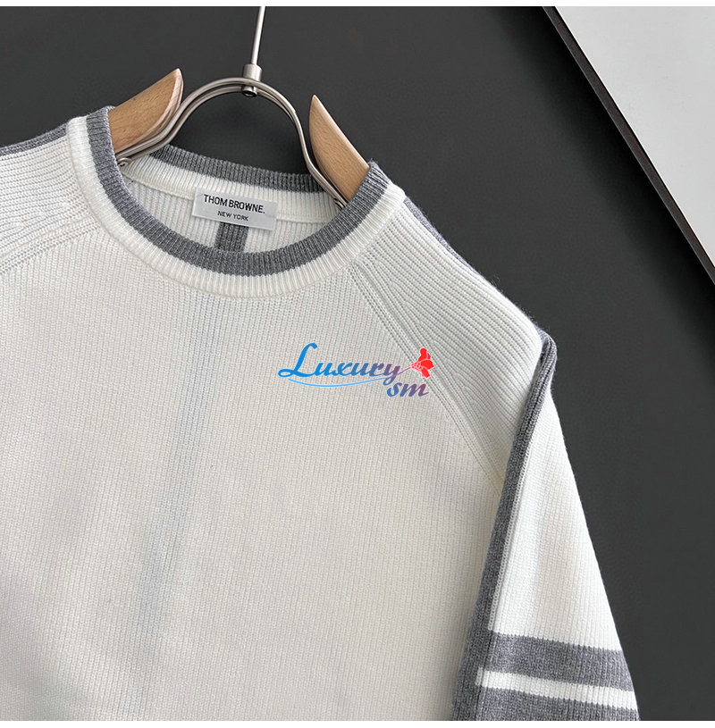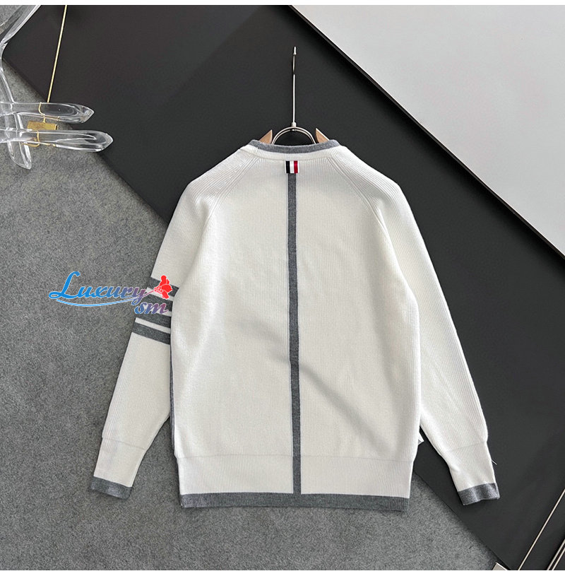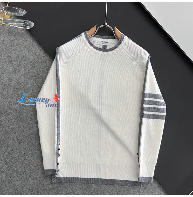 THOM BROWNE-03107 톰 브라운 화이트 스트라이프 장식 스웨터 남성용