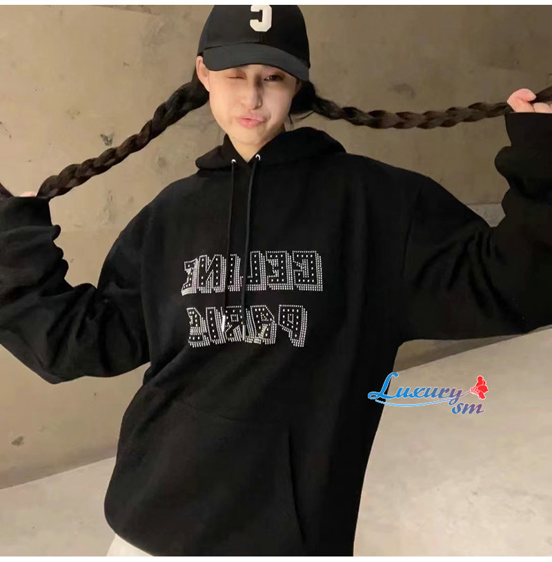 CELINE-03105 셀린느 블랙 스터드 장식 후드 티셔츠 남여공용