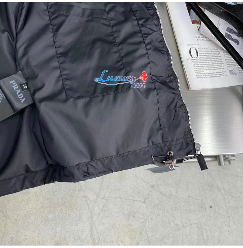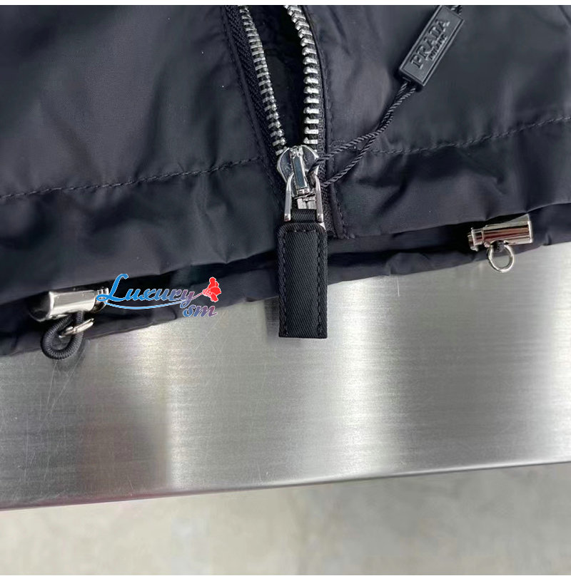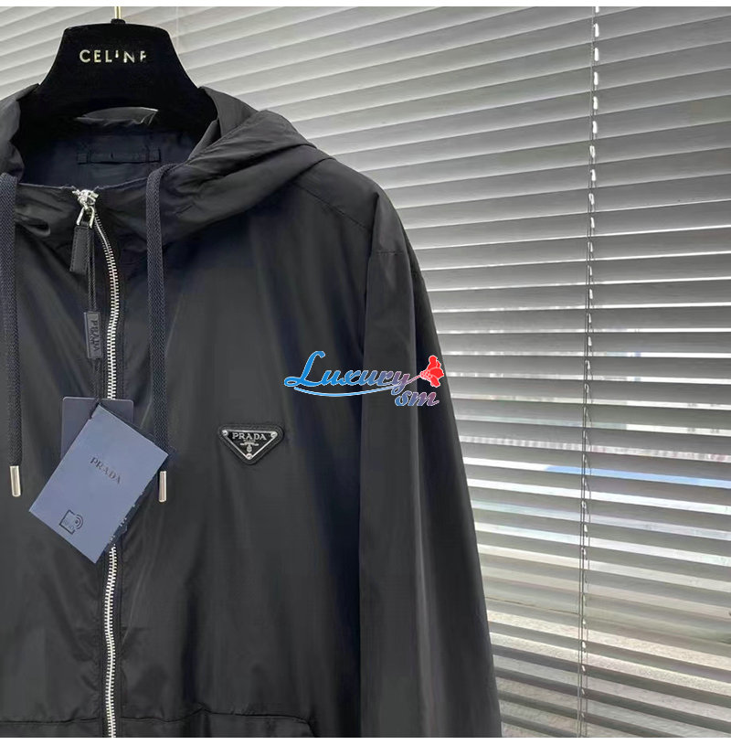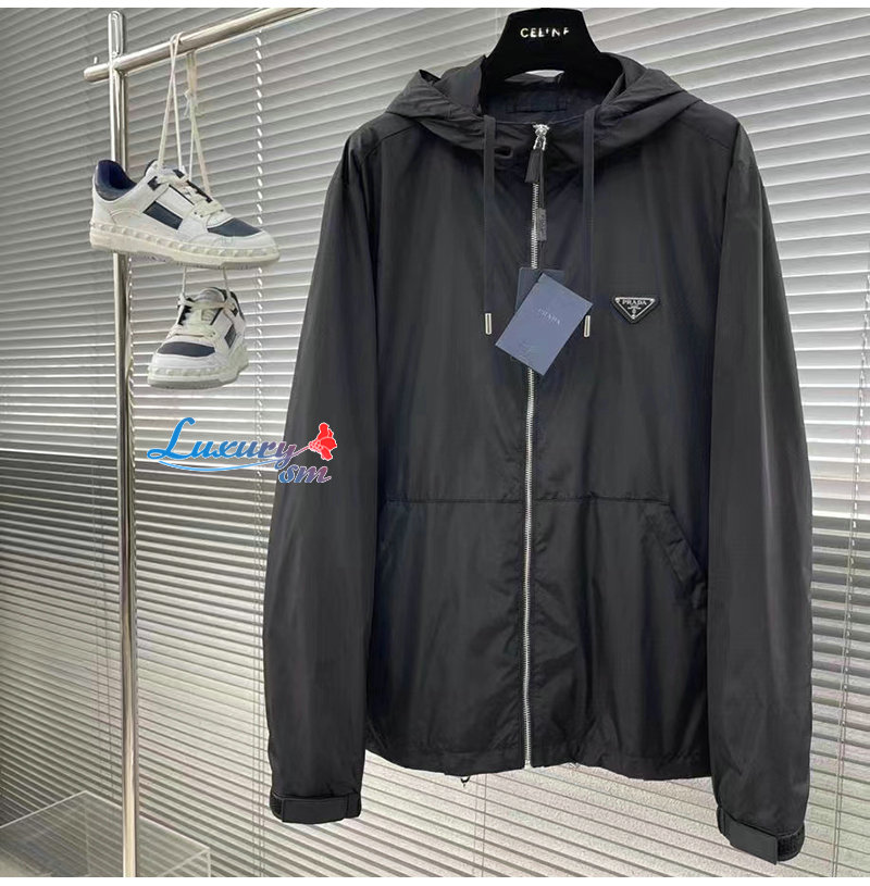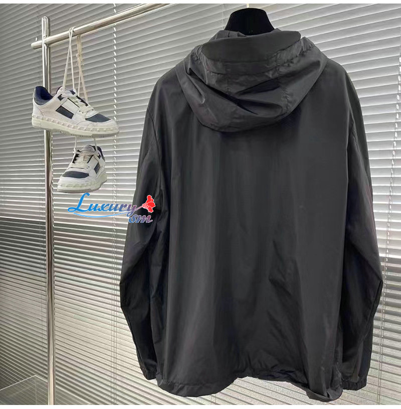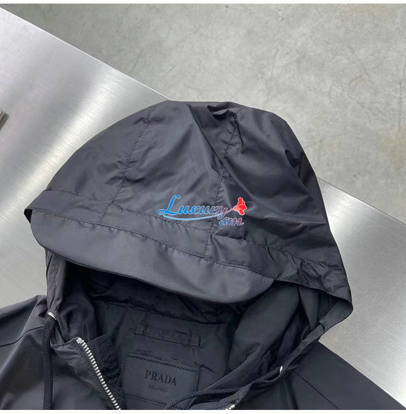 PRADA-03107 프라다 블랙 트라이앵글 로고 바람막이 후드 재킷 남성용