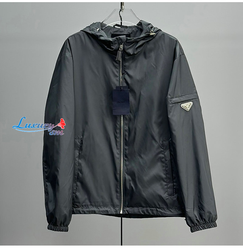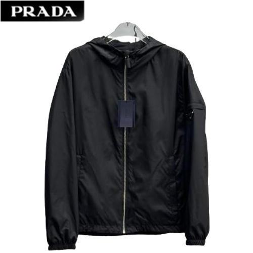 PRADA-031016 프라다 블랙 트라이앵글 로고 바람막이 후드 재킷 남성용