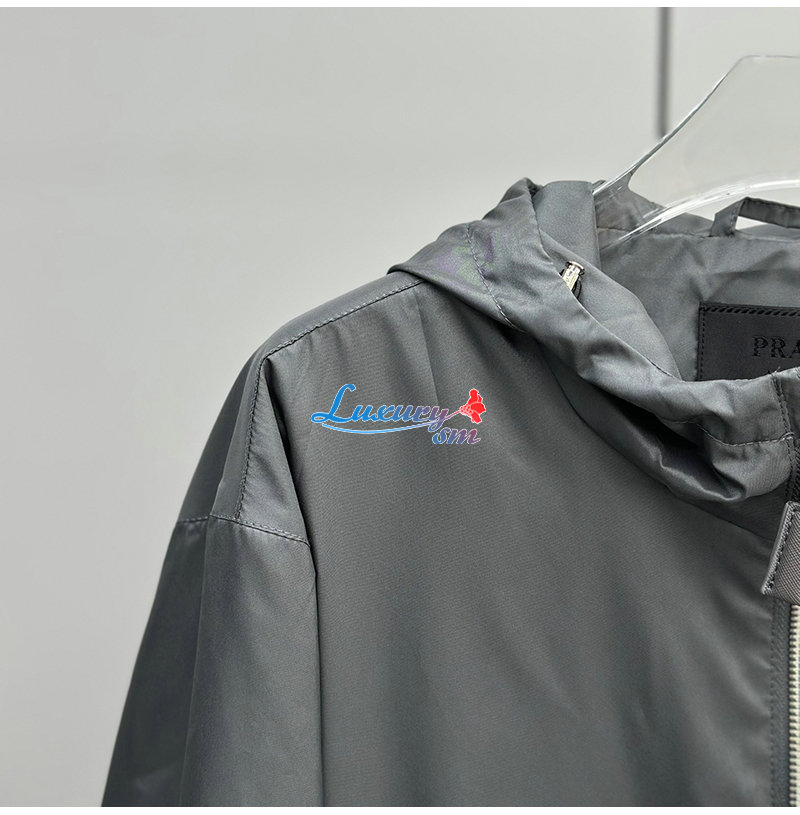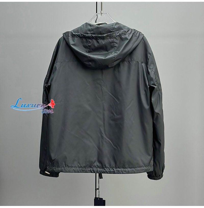PRADA-031017 프라다 그레이 트라이앵글 로고 바람막이 후드 재킷 남성용