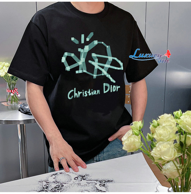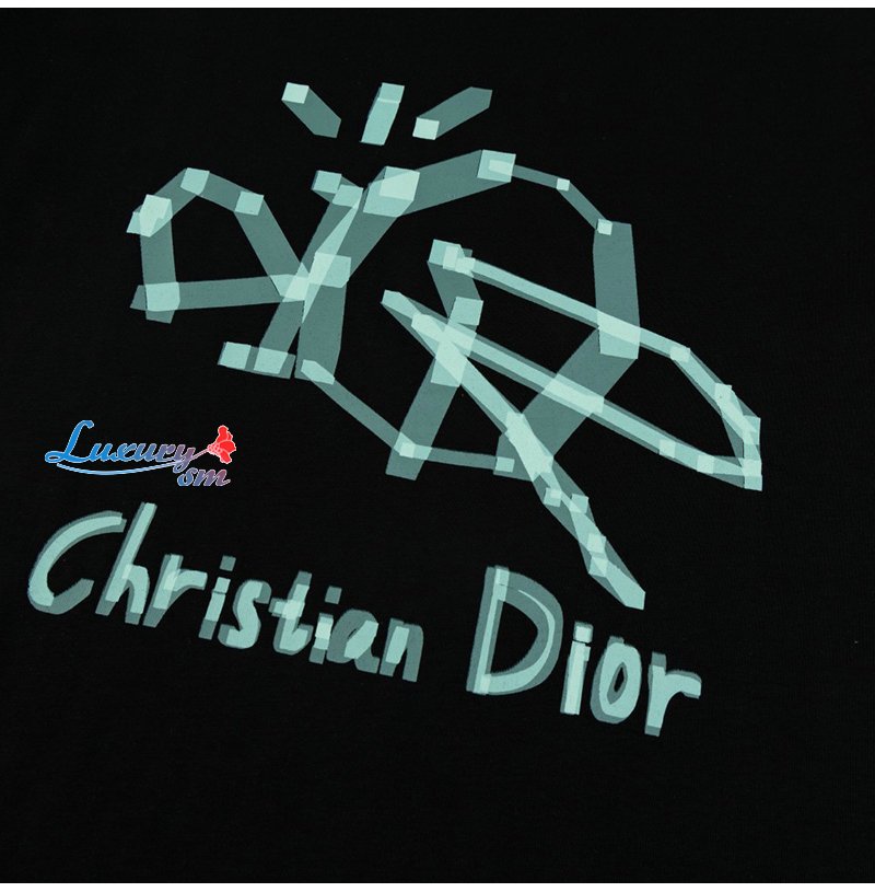DIOR-030914 디올 블랙 프린트 장식 티셔츠