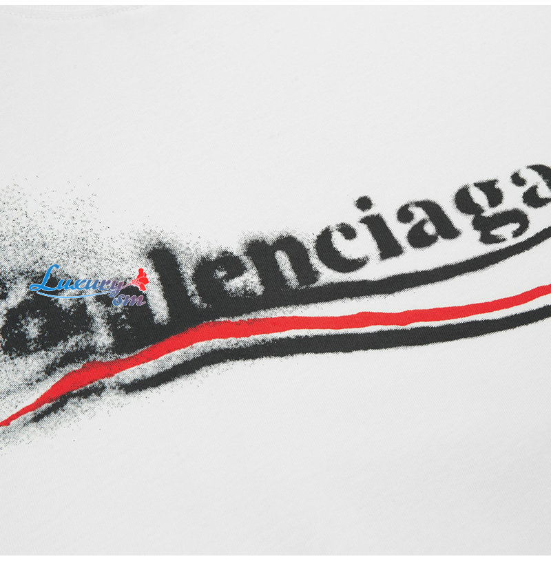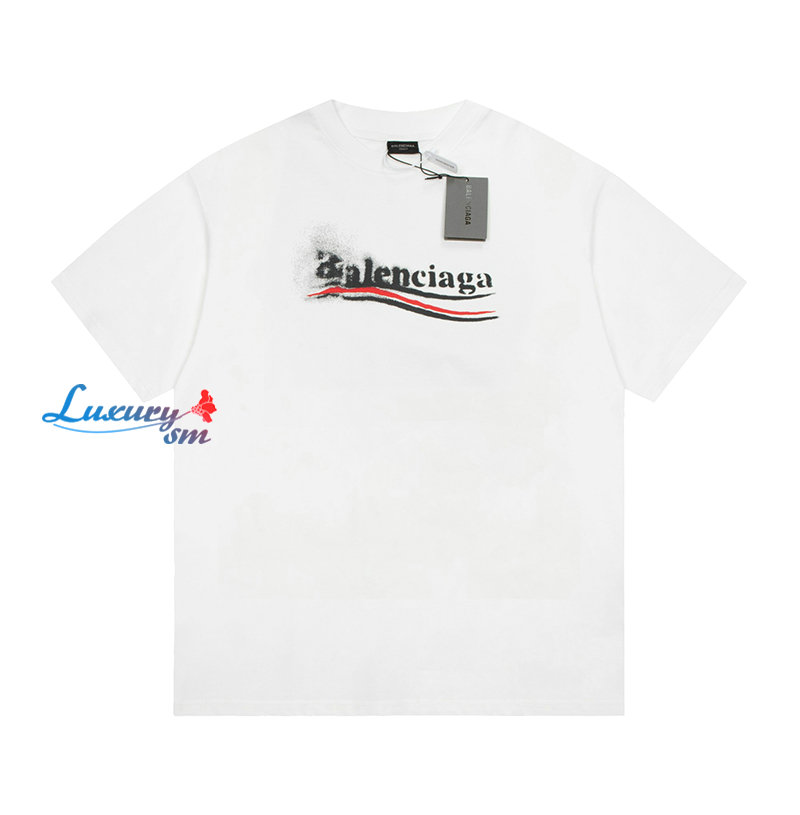 BALENCIAGA-03137 발렌시아가 화이트 프린트 장식 티셔츠 남여공용