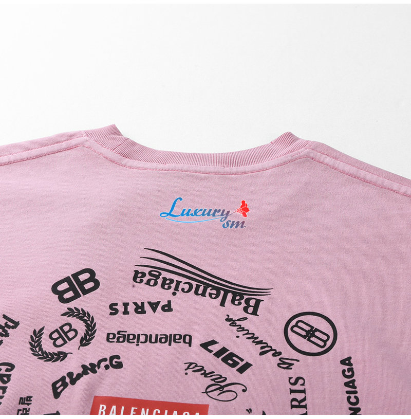 BALENCIAGA-031714 발렌시아가 핑크 프린트 장식 티셔츠 남여공용