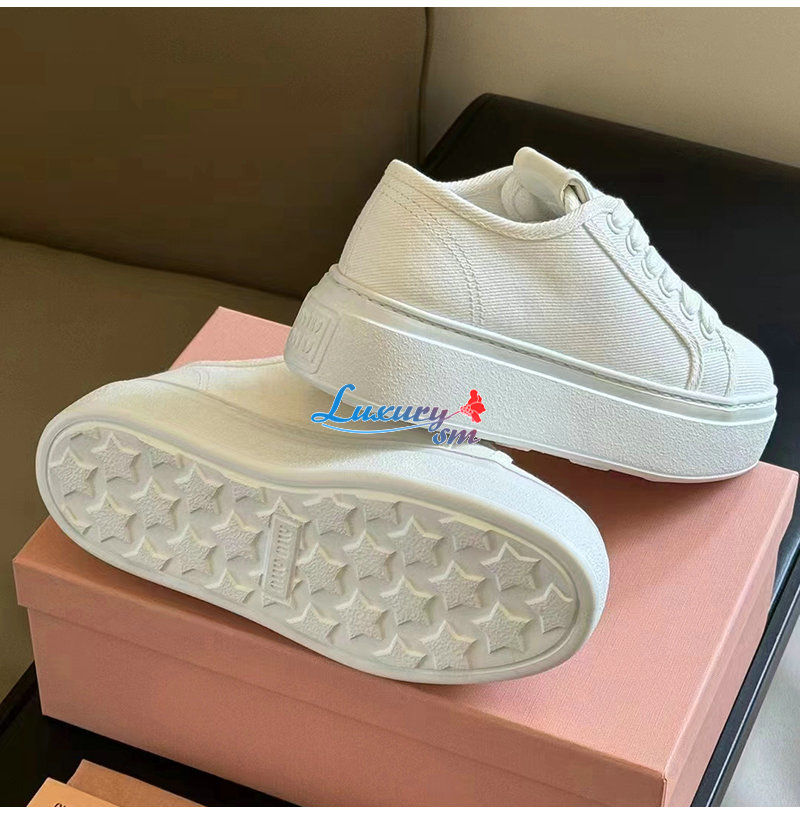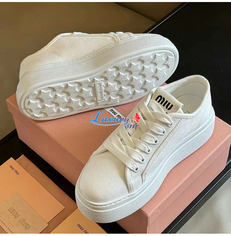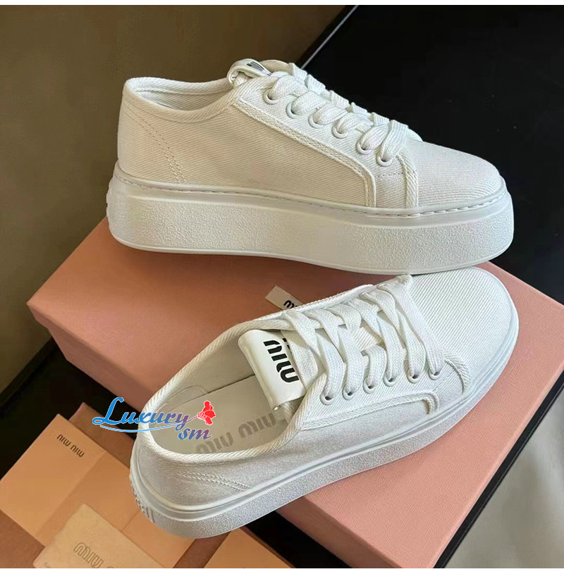 MIUMIU-5E889D 미우미우 화이트 데님 스니커즈 여성용