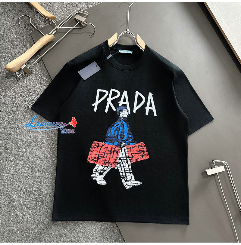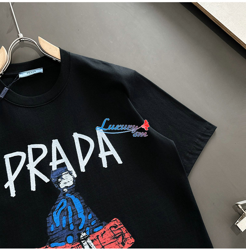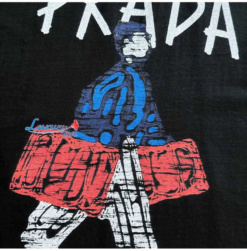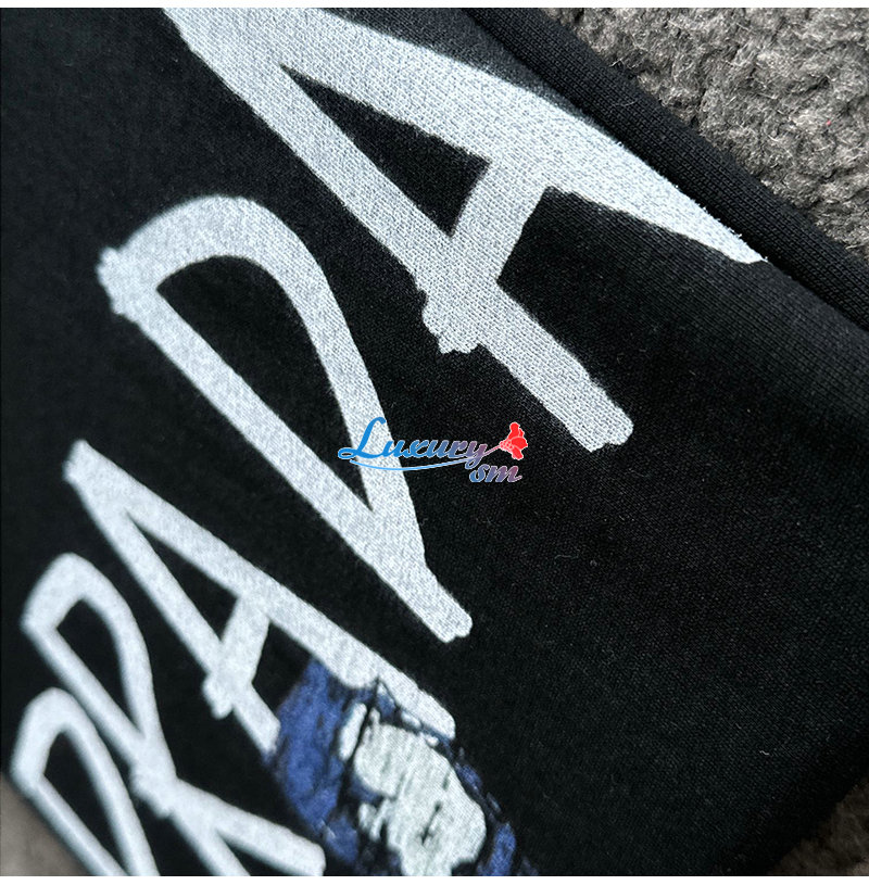PRADA-03197 프라다 블랙 프린트 장식 티셔츠