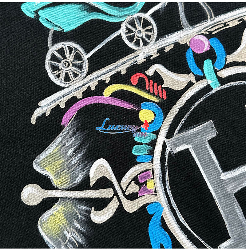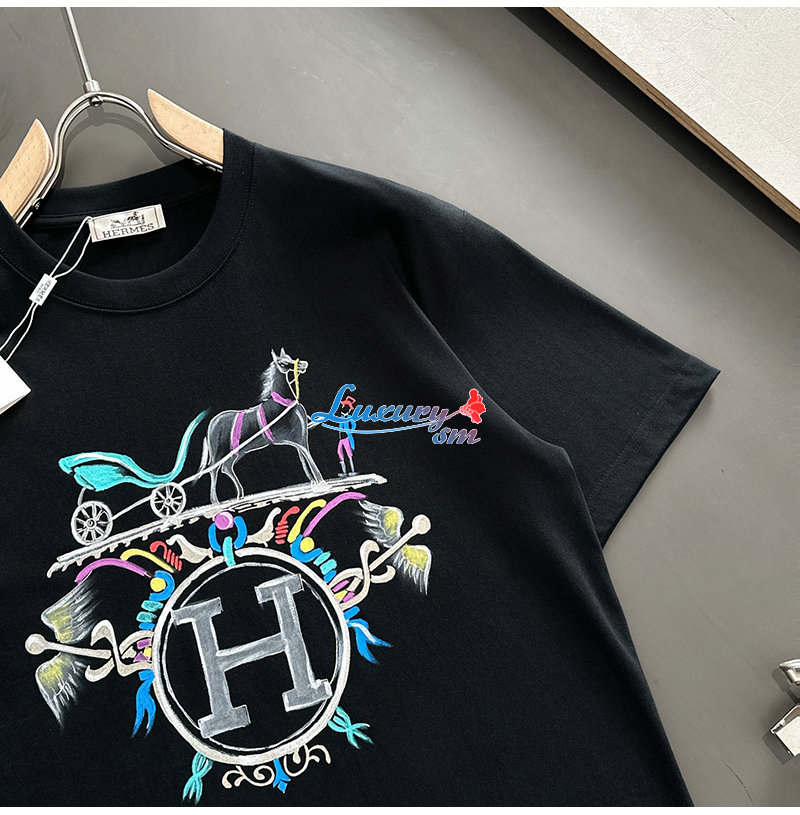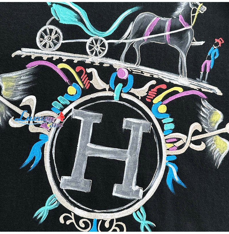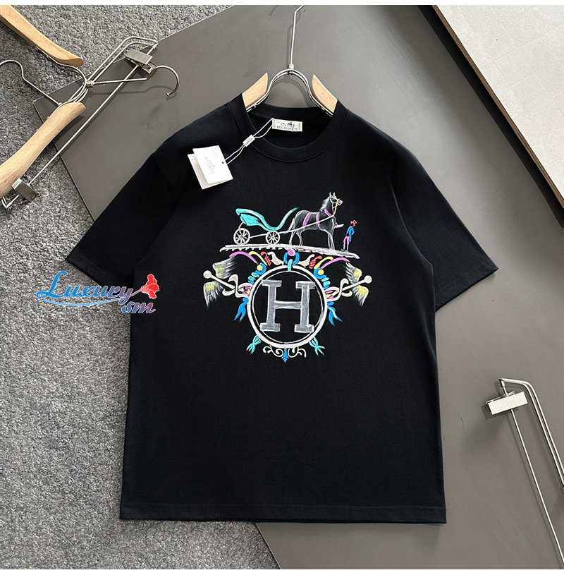 HERMES-031910 에르메스 블랙 프린트 장식 티셔츠 남성용