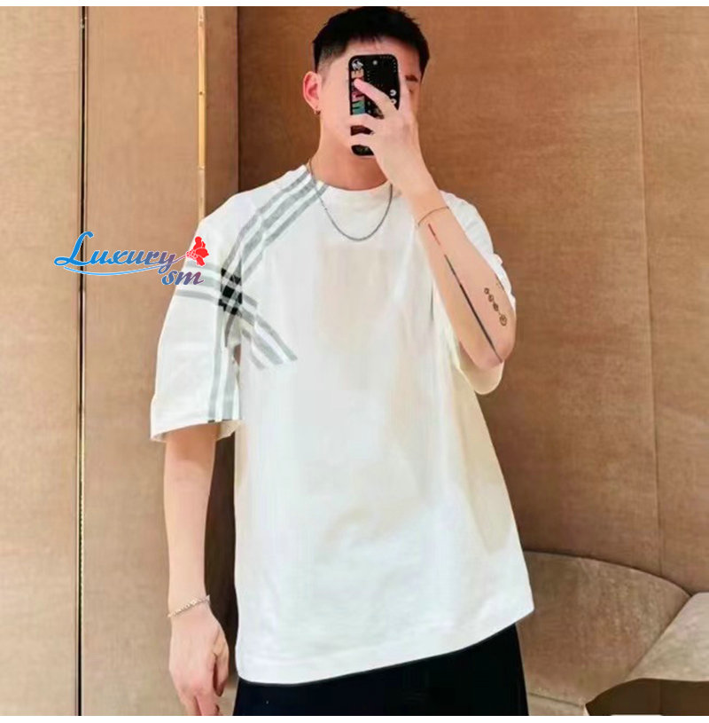 BURBERRY-80846841 버버리 블랙 체크 슬리브 코튼 티셔츠 남성용 가격 : 160,000원