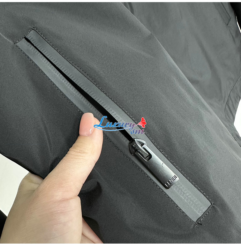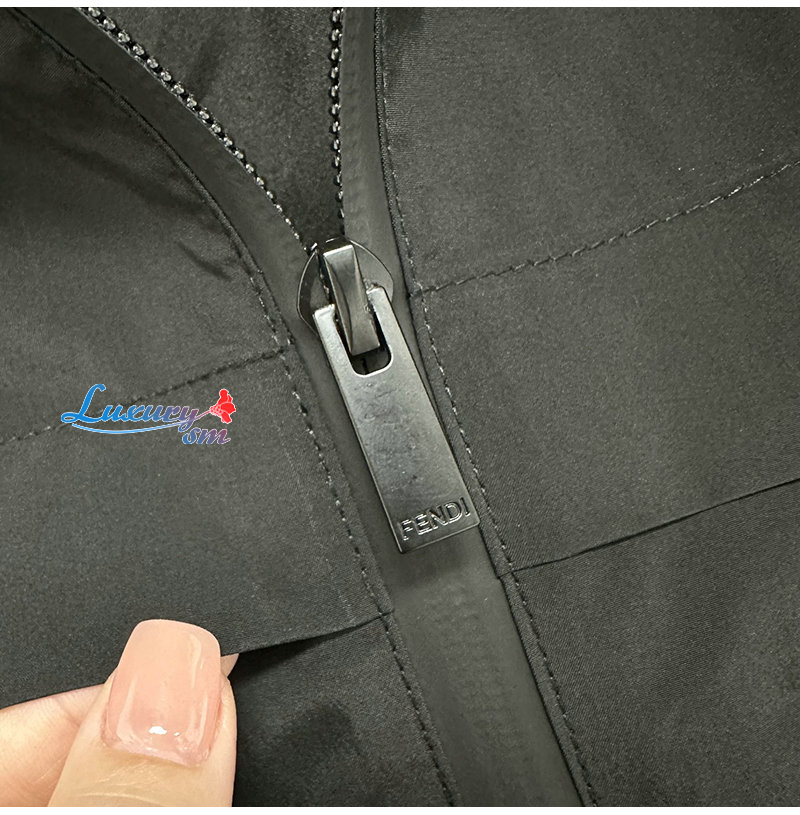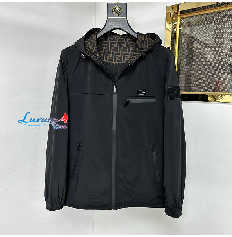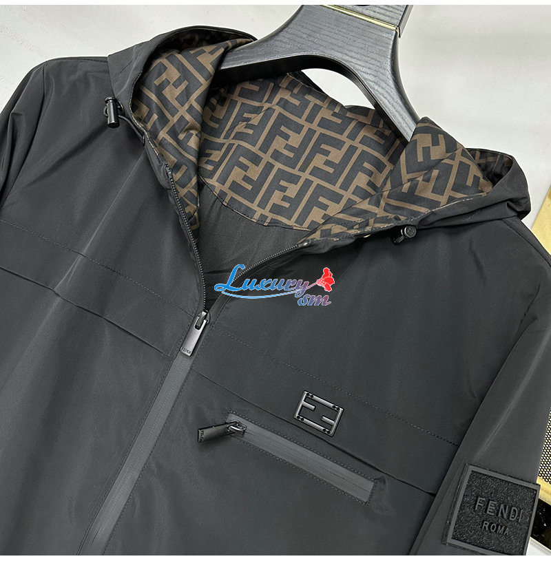 FENDI-03225 펜디 블랙 나일론 FF 디테일 바람막이 후드 재킷 남성용