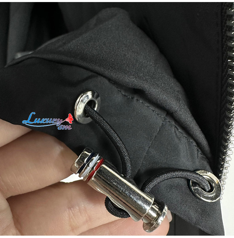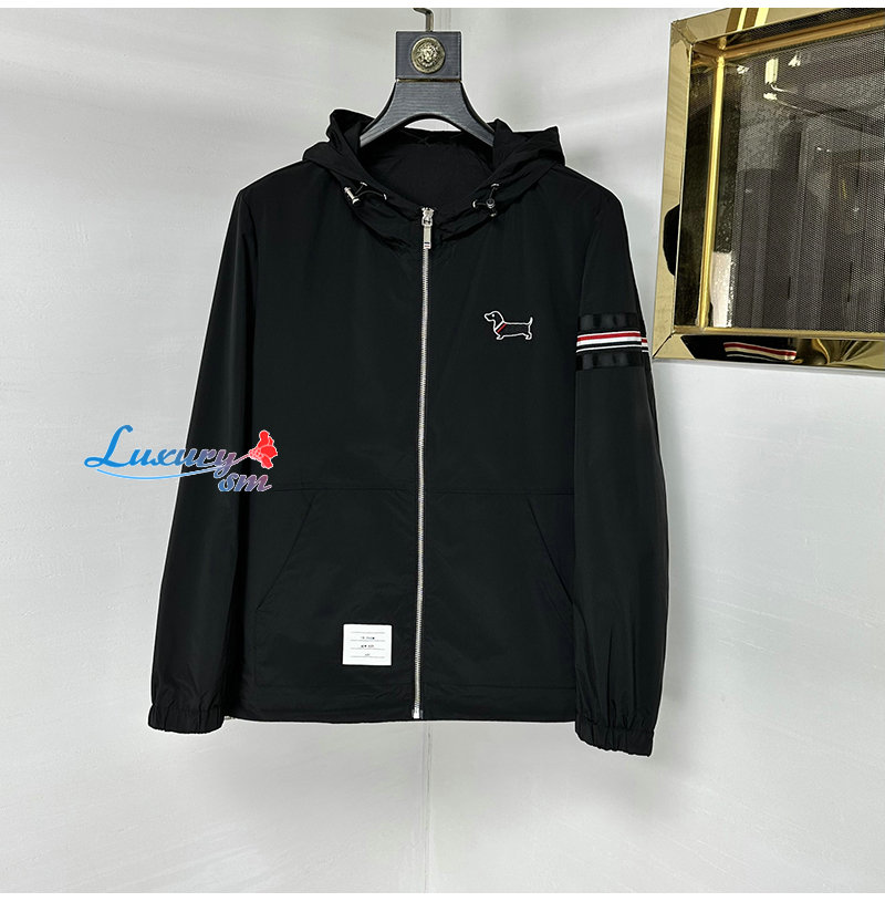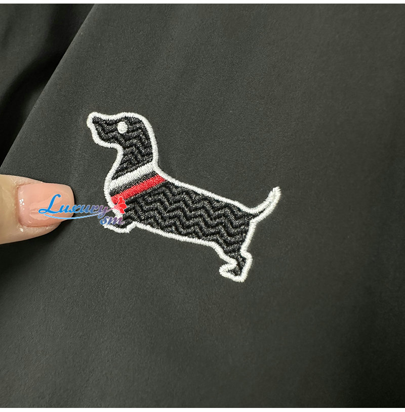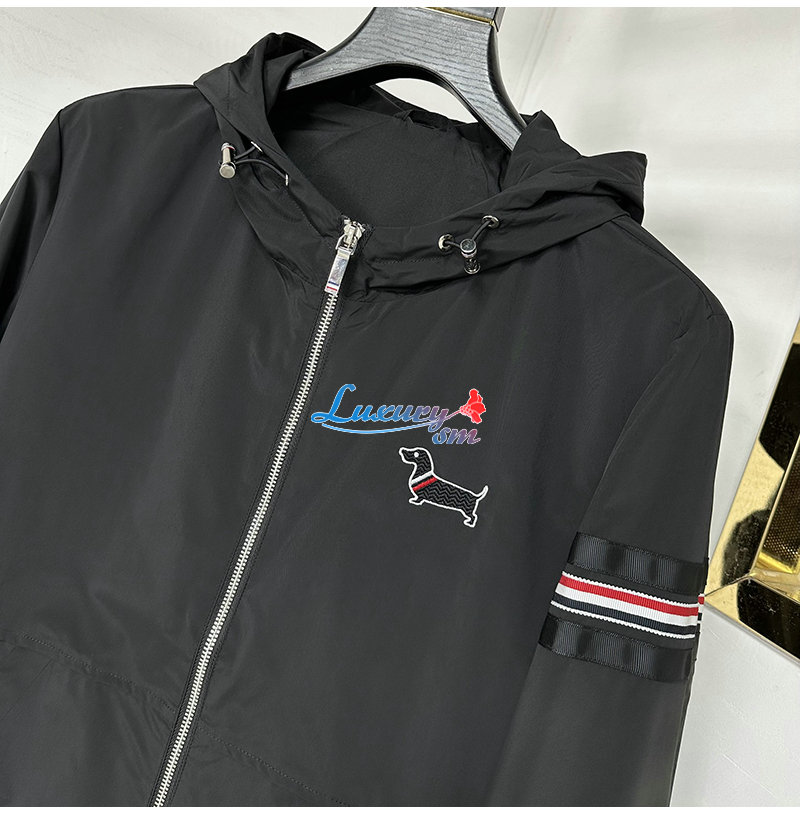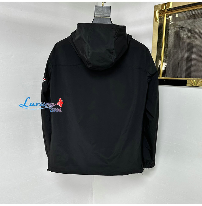THOM BROWNE-03228 톰 브라운 블랙 아플리케 장식 바람막이 후드 재킷 남성용