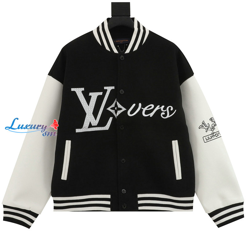 LOUIS VUITTON-032318 루이비통 블랙/화이트 아플리케 장식 베이스볼 재킷 남성용