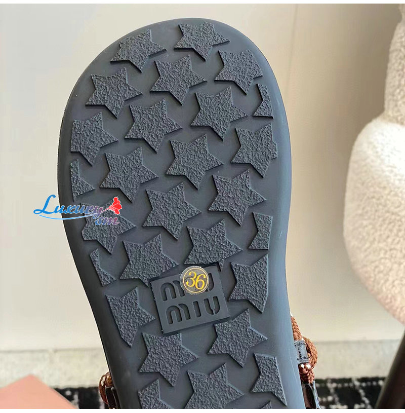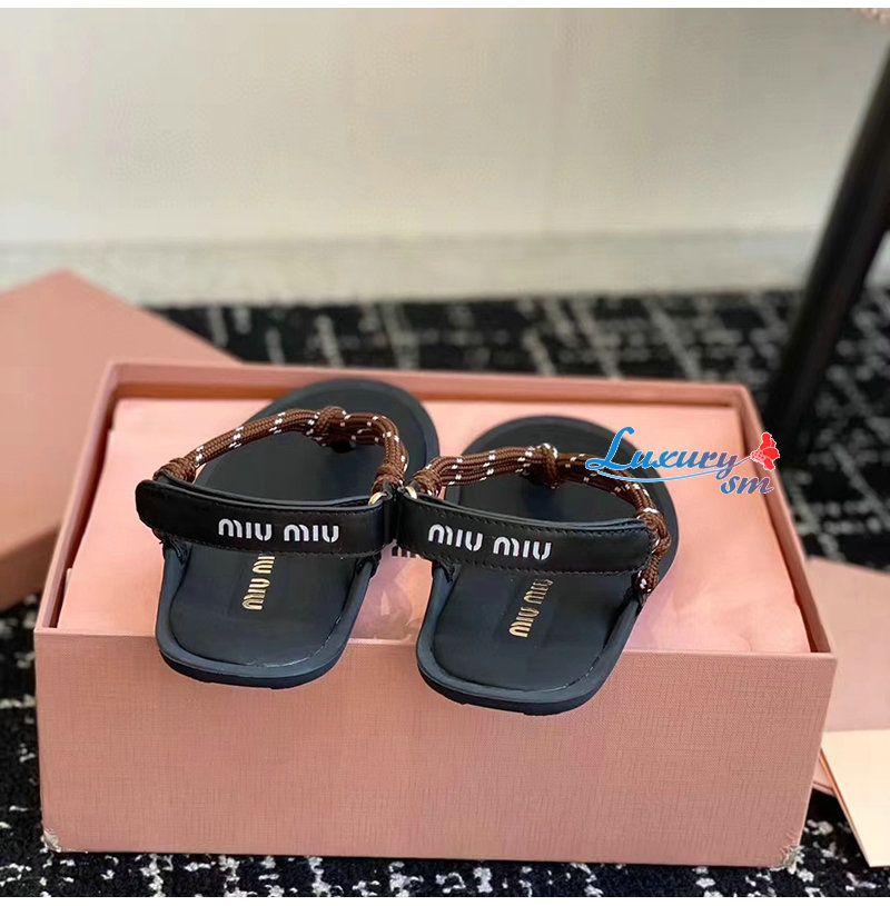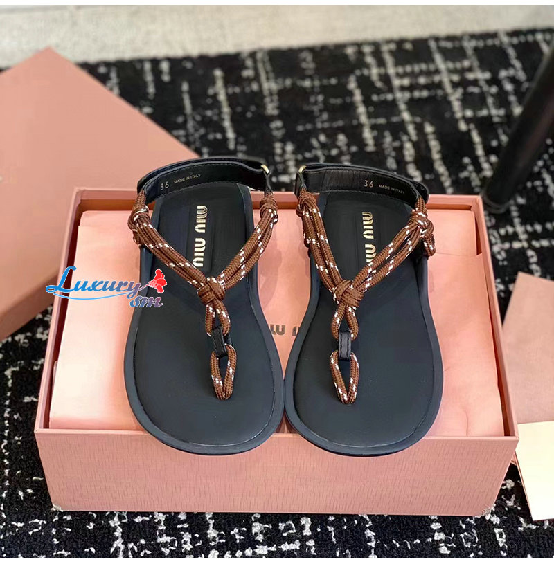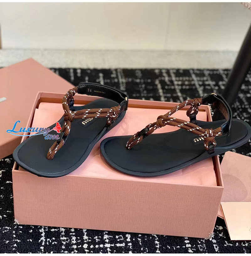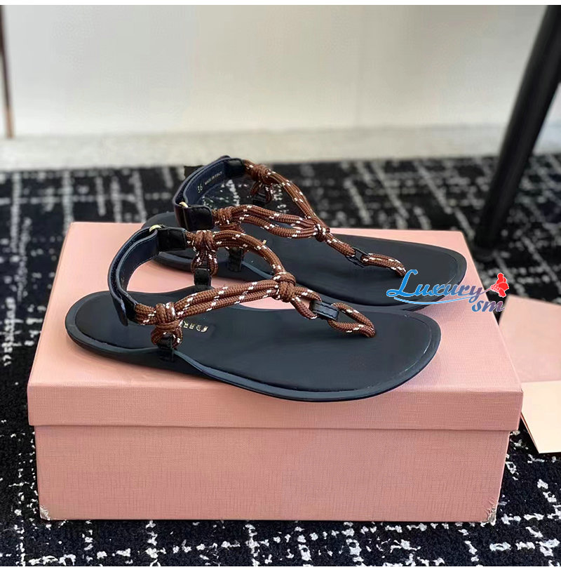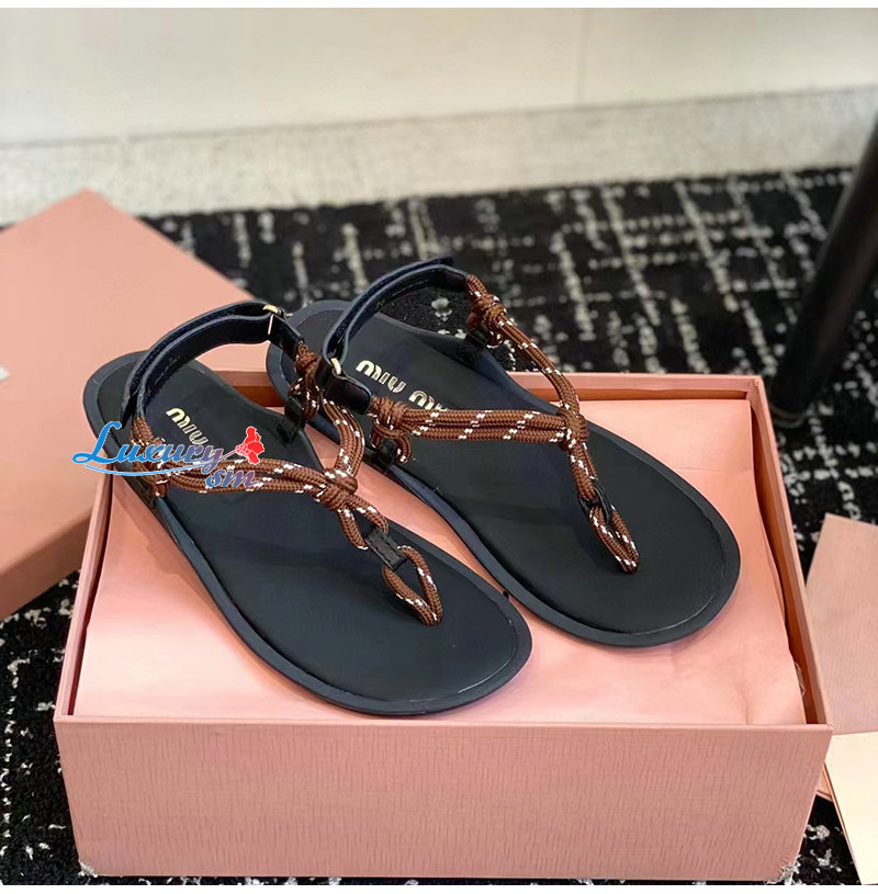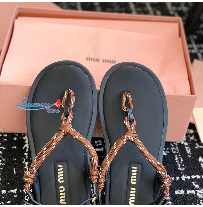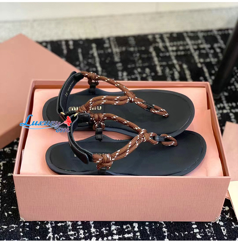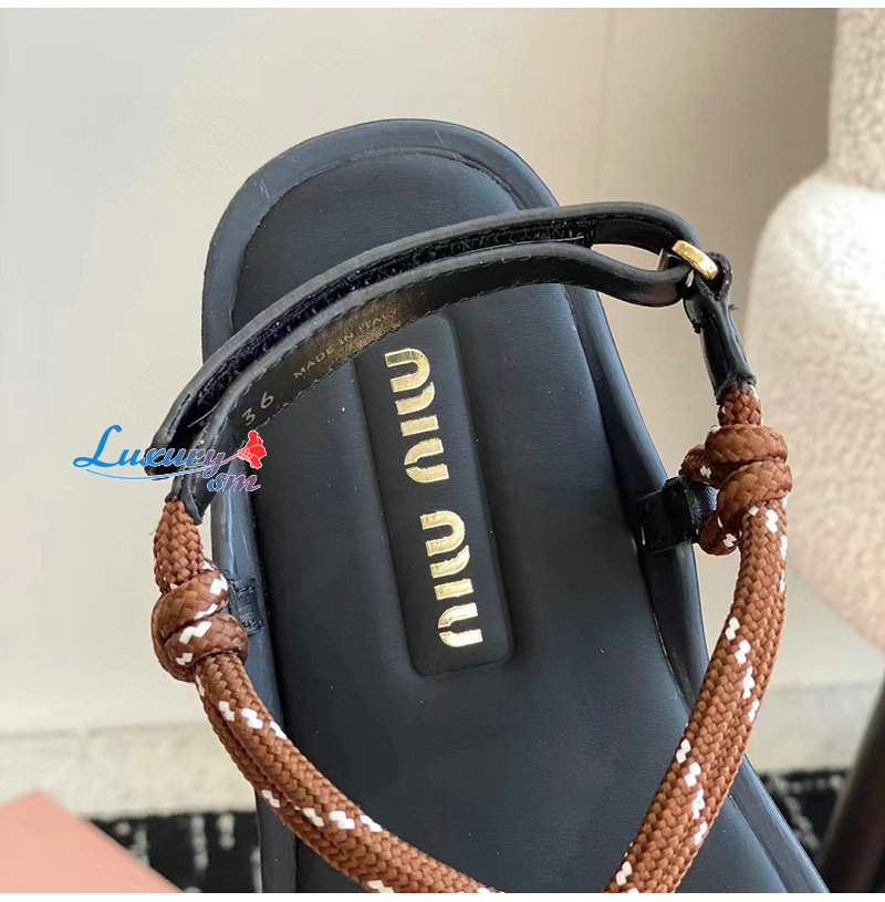 MIUMIU-5Y184E 미우미우 브라운 Riviere 코드 가죽 샌들 여성용