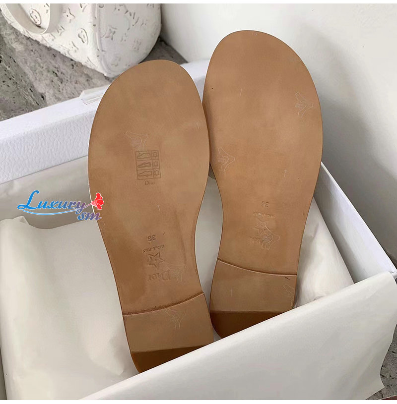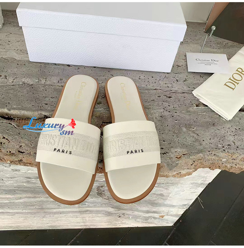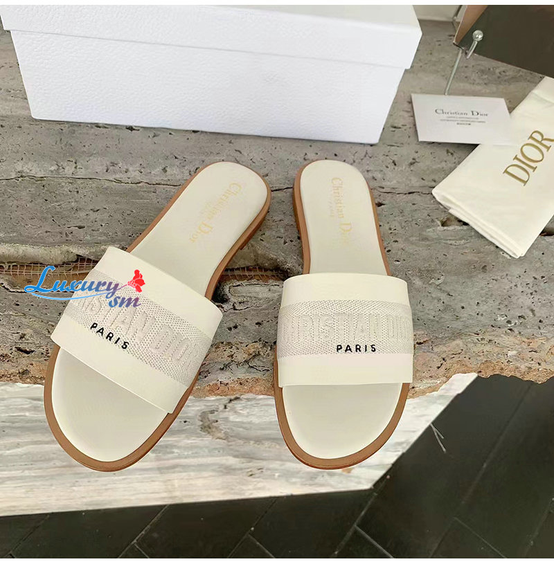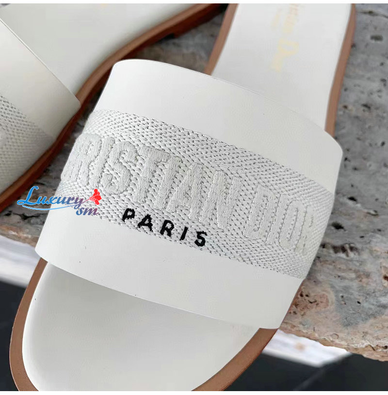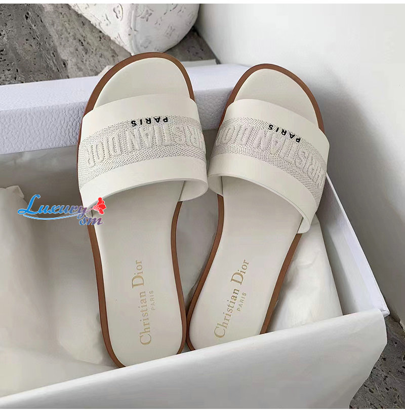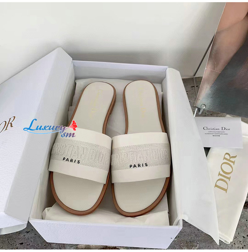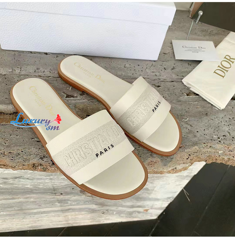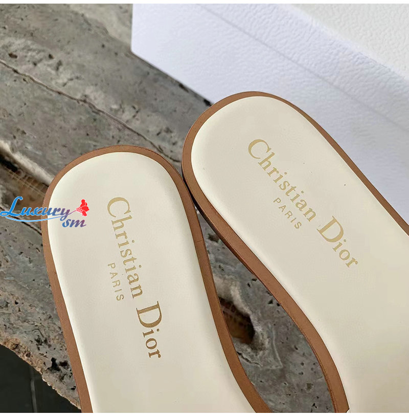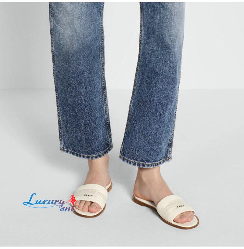 DIOR-KCQ986 디올 화이트 송아지 가죽 Dway 뮬 여성용