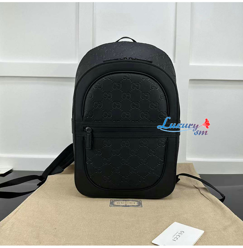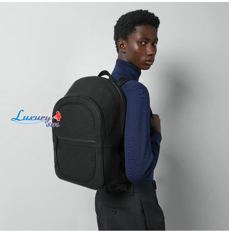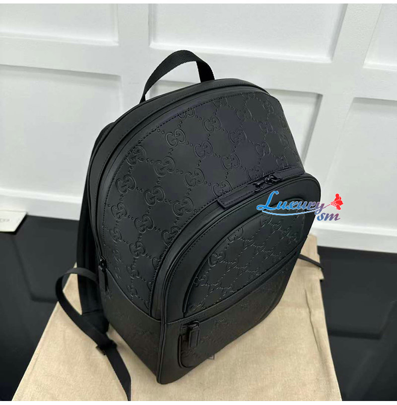 [스페셜오더]GUCCI-771280 1000 구찌 블랙 가죽 GG 러버 효과 백팩