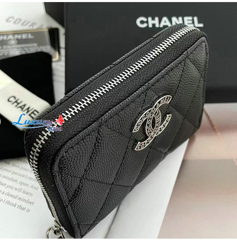 CHANEL-AP3839 샤넬 블랙 캐비어 가죽 지퍼 지갑