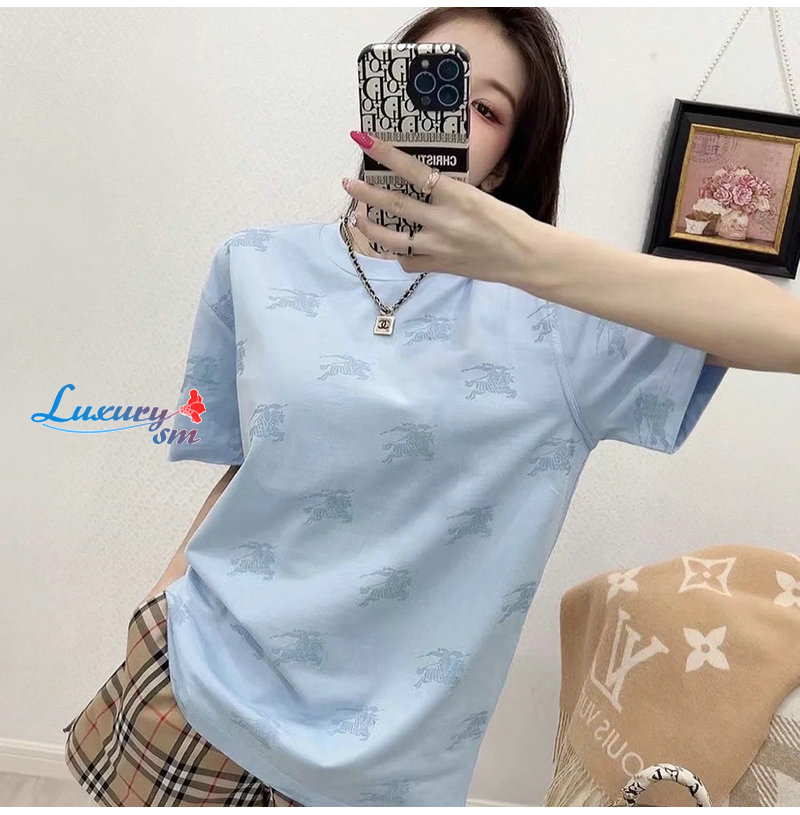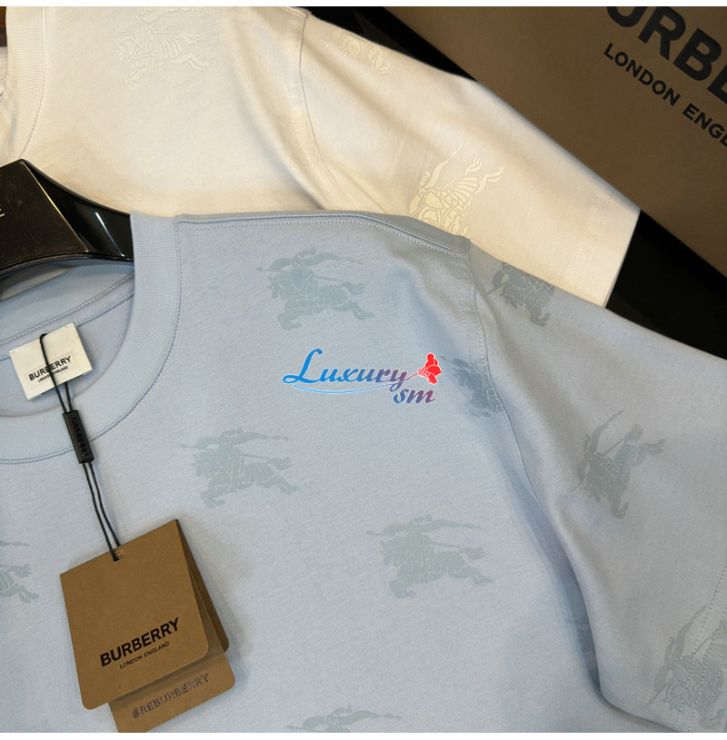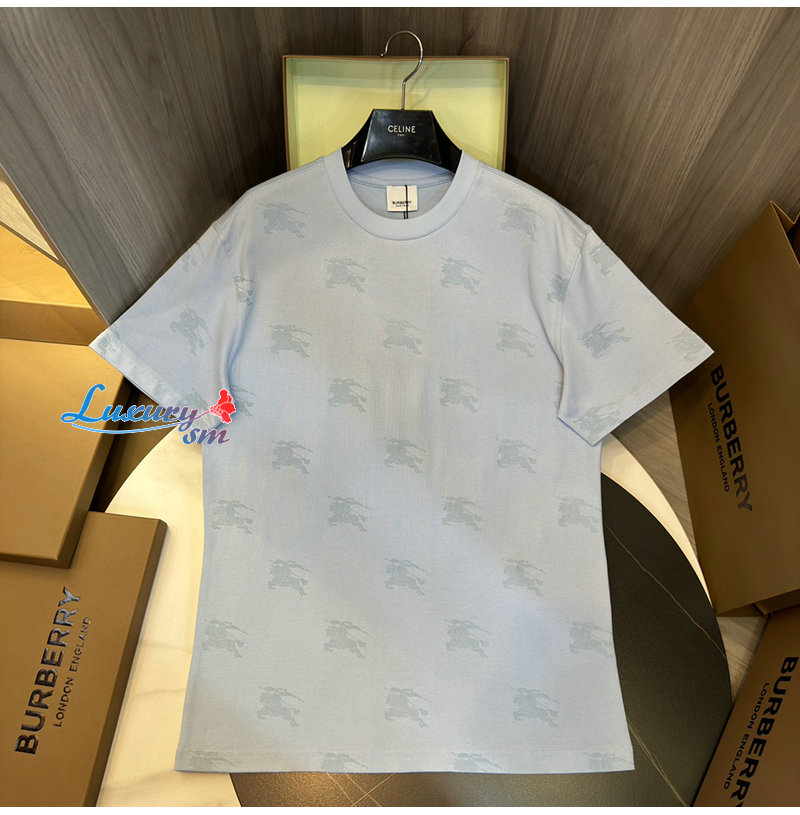 BURBERRY-80720871 버버리 라이트 블루 EKD 코튼 티셔츠 남여공용