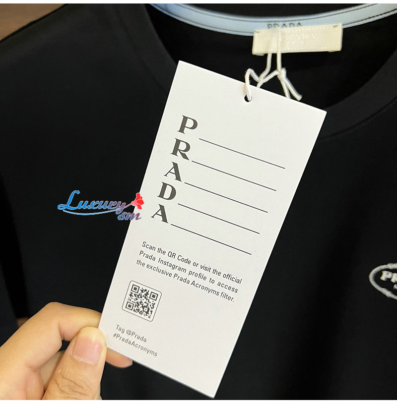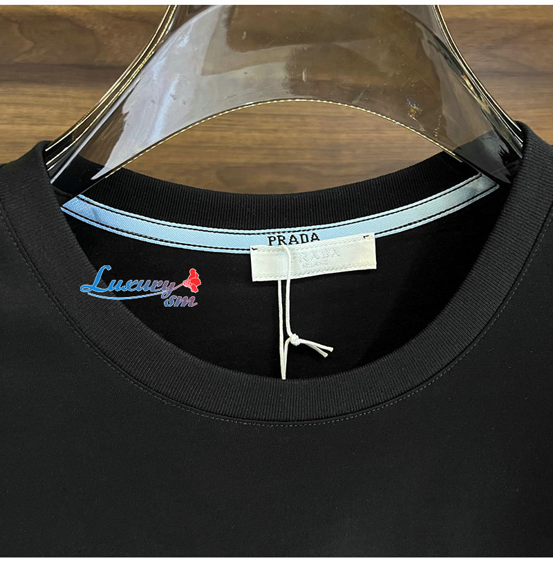 PRADA-04266 프라다 블랙 로고 아플리케 장식 티셔츠 남성용