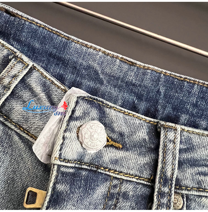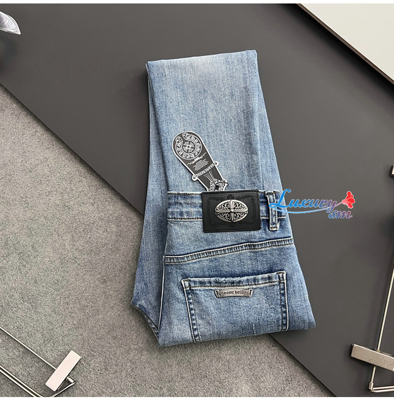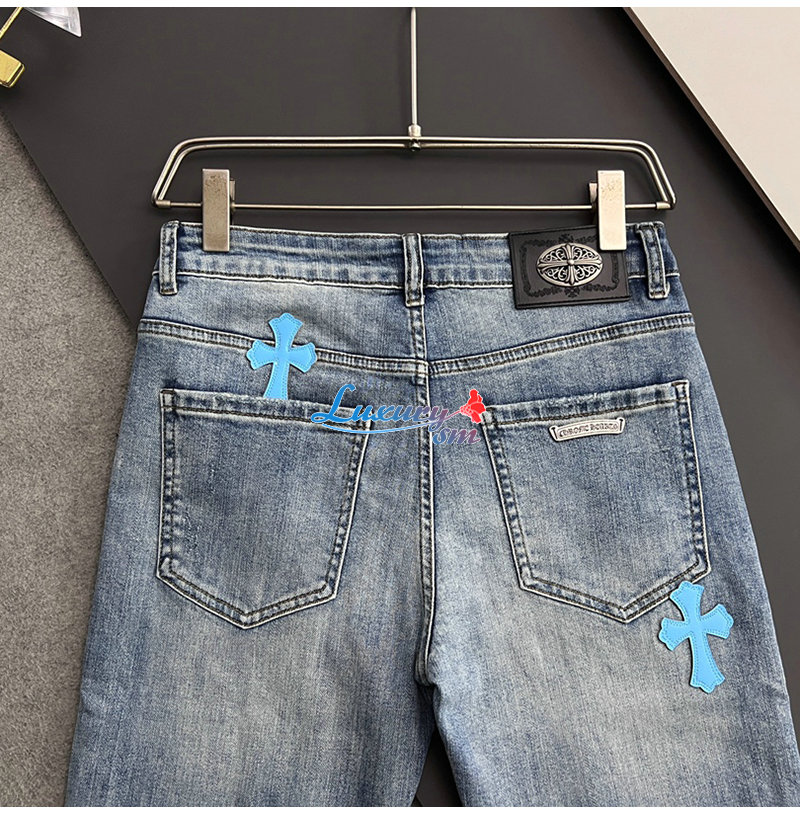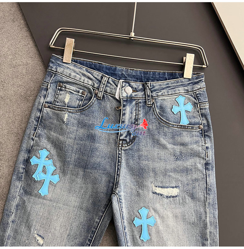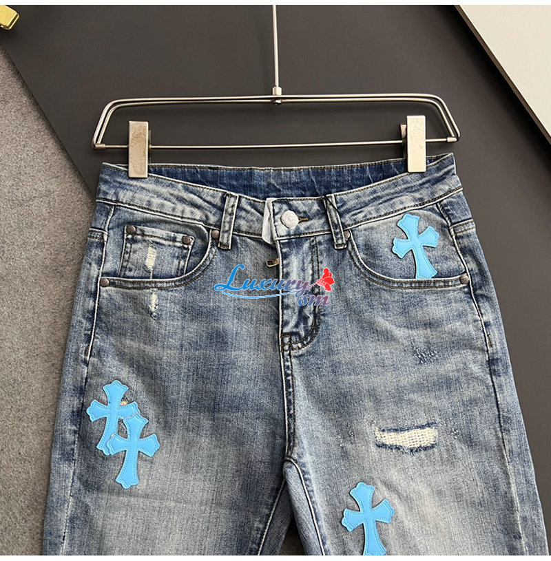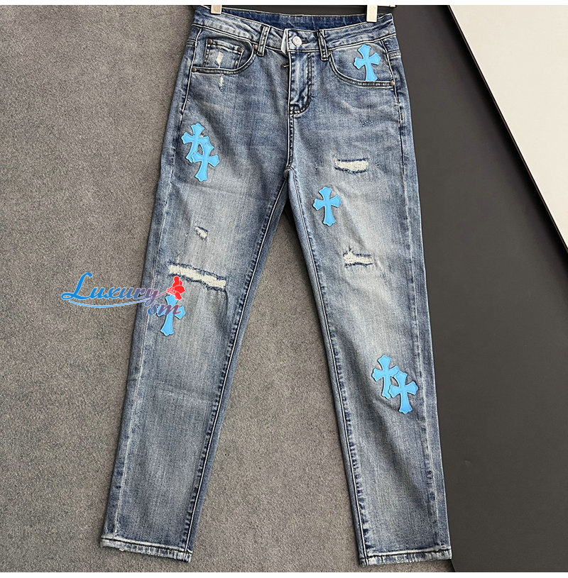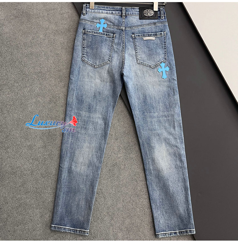 CHROMEHEARTS-04293 크롬하츠 블루 십자가 아플리케 장식 청바지 남성용