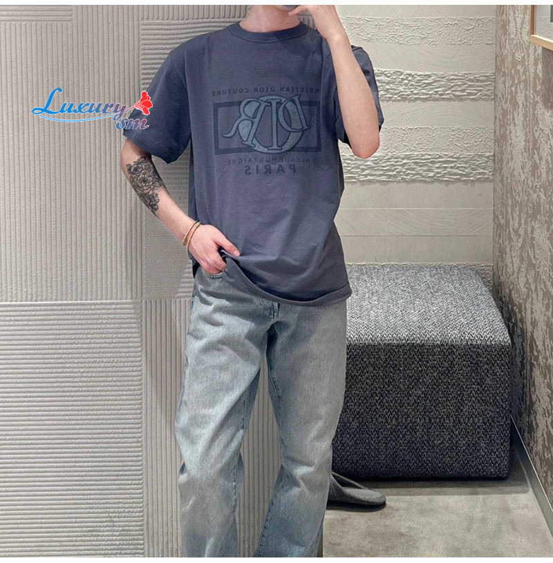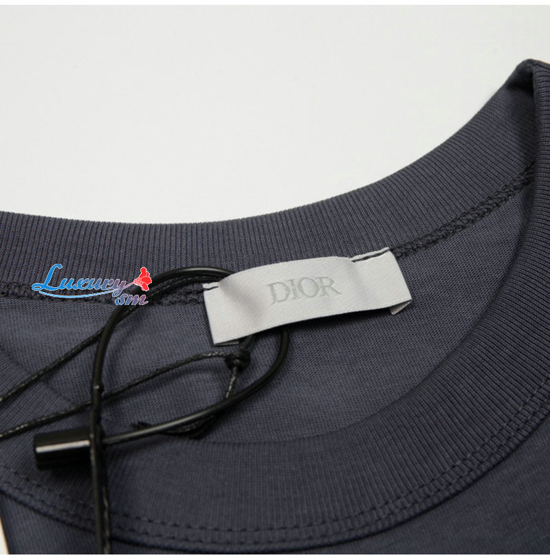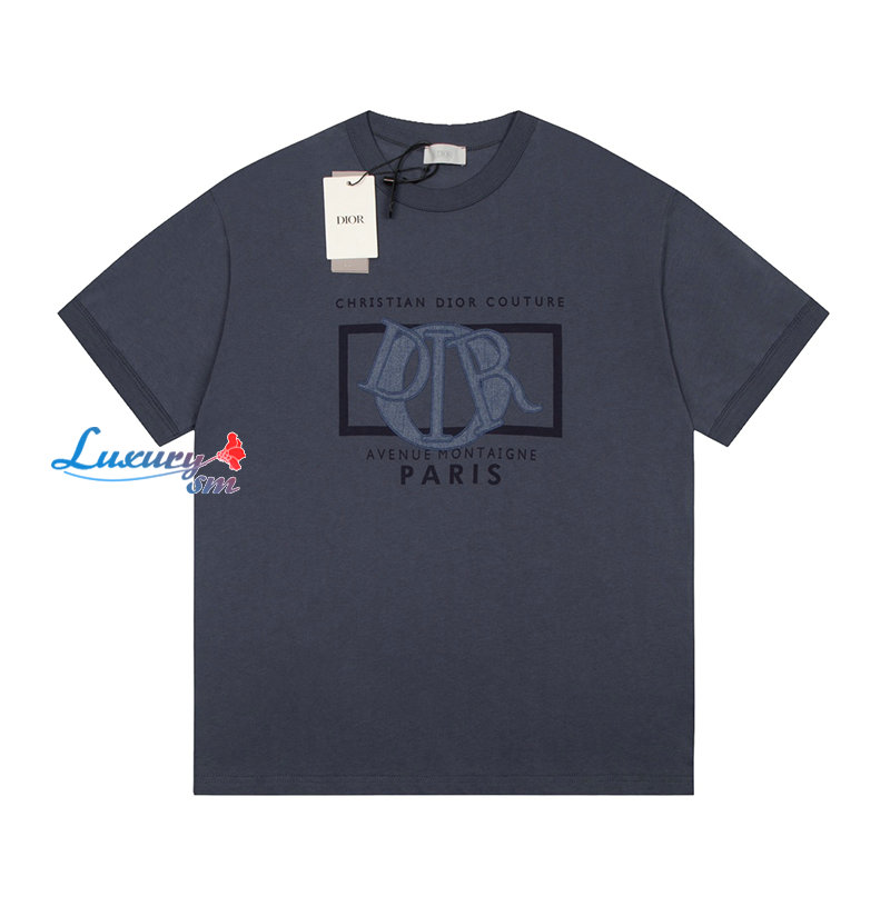 DIOR-04294 디올 네이비 DIOR 아플리케 장식 티셔츠 남여공용