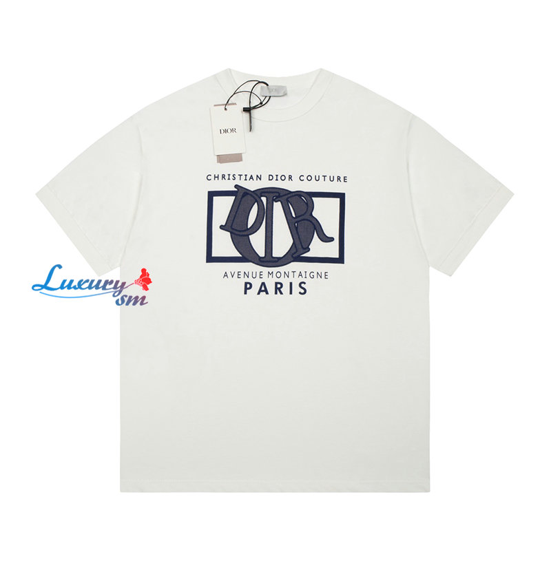 DIOR-04295 디올 화이트 DIOR 아플리케 장식 티셔츠 남여공용