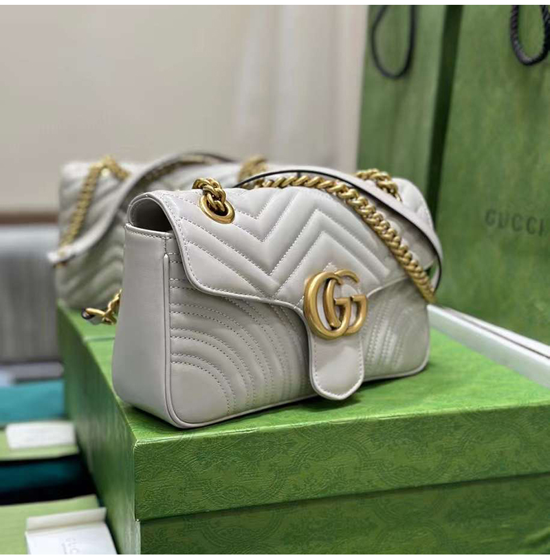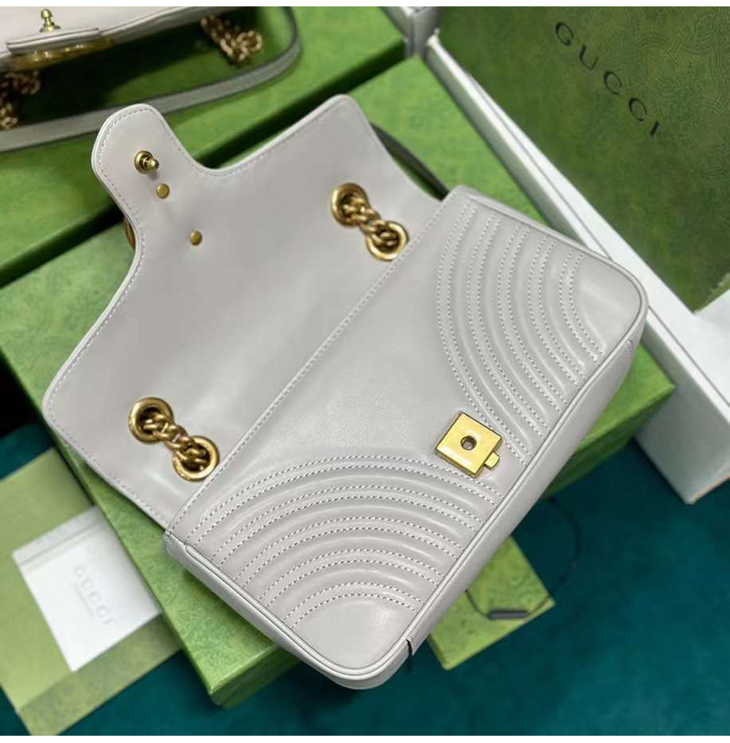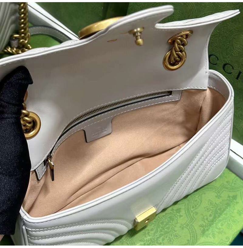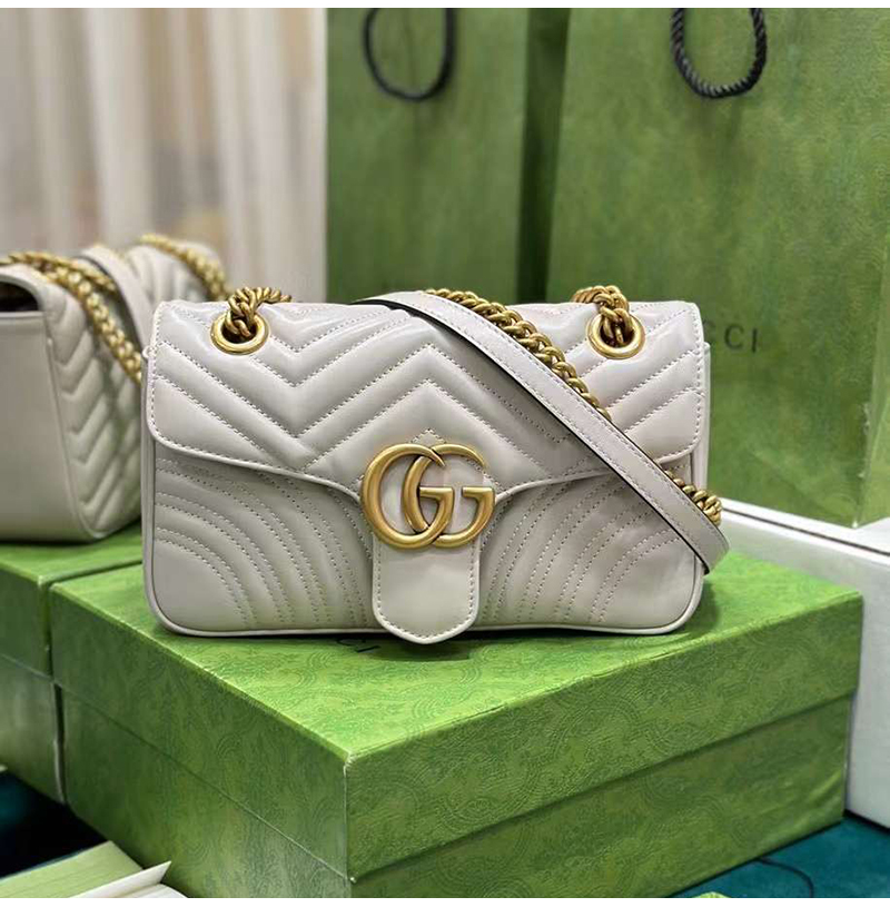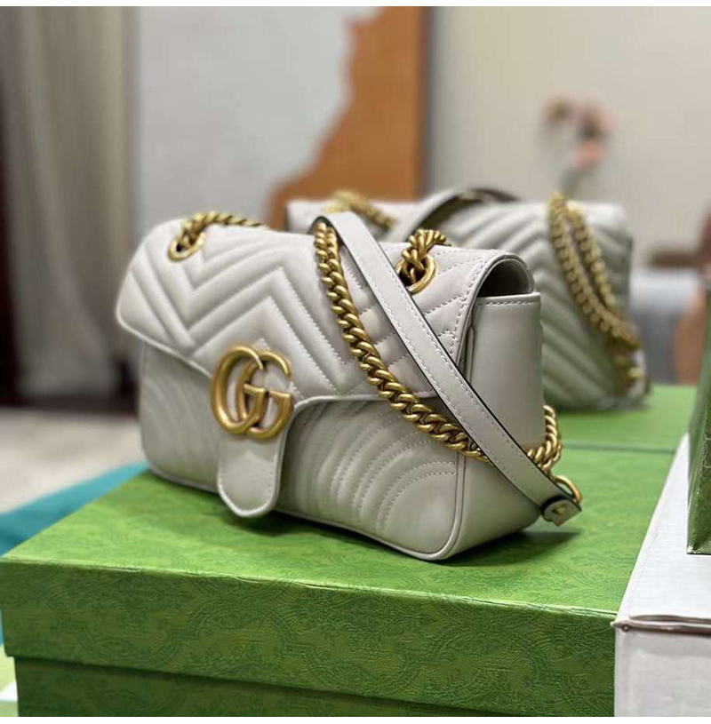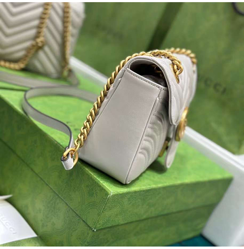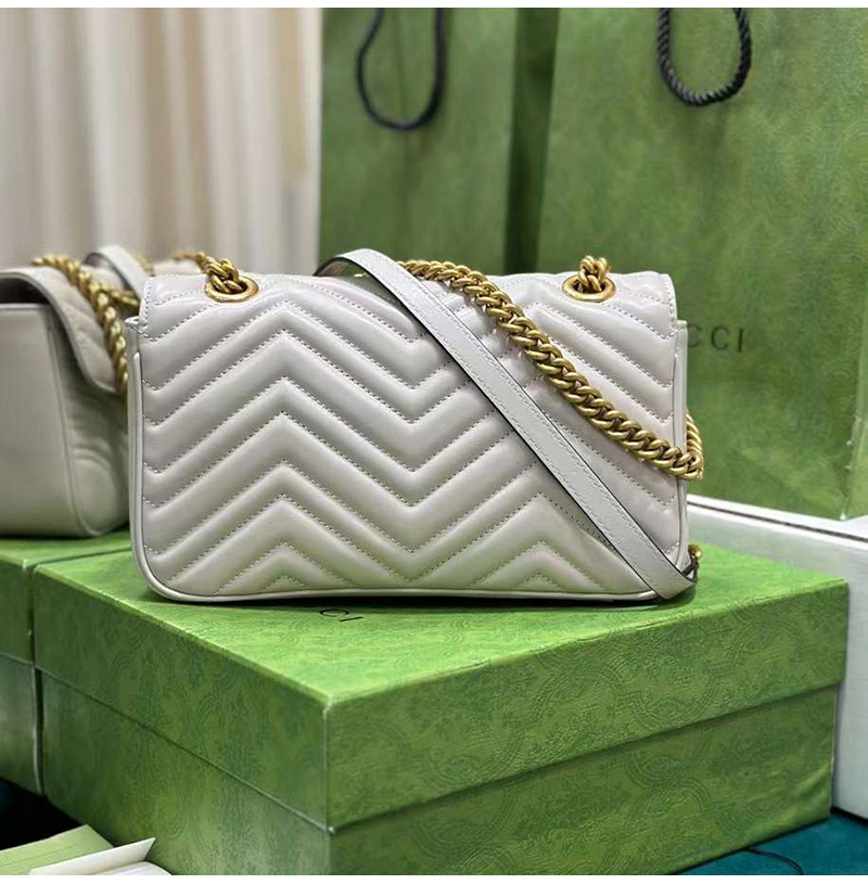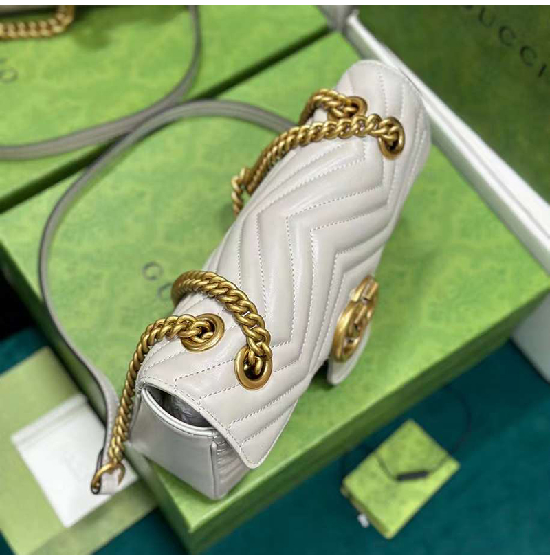[스페셜오더]GUCCI-443497 9085 구찌 화이트 사선형 마틀라세 퀼트 GG 마몽 스몰 숄더백
