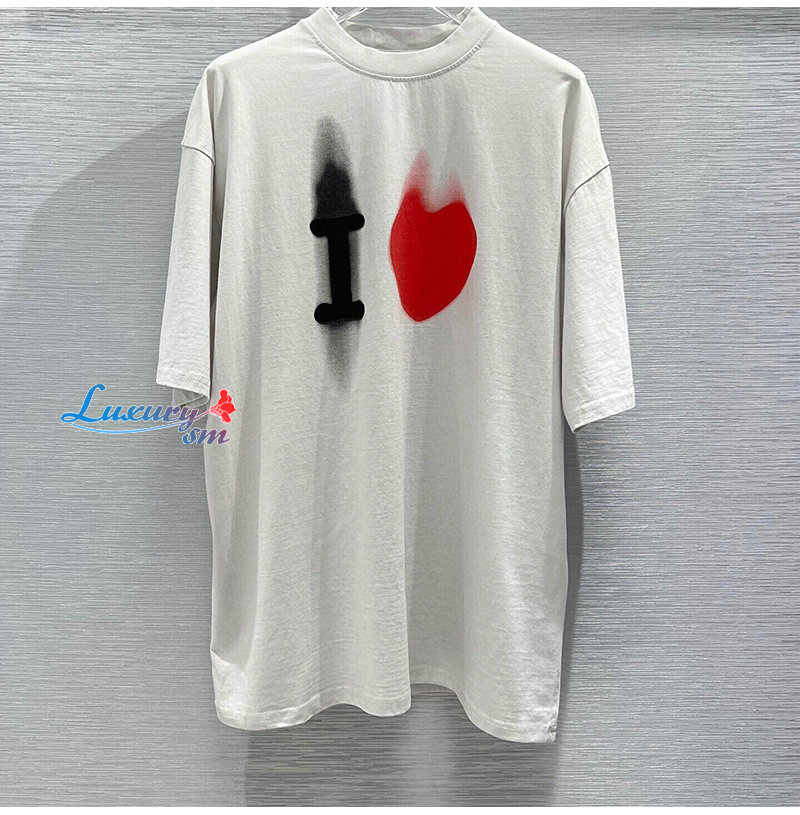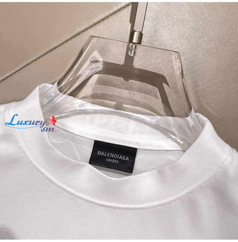 BALENCIAGA-05143 발렌시아가 화이트 프린트 장식 티셔츠 남여공용