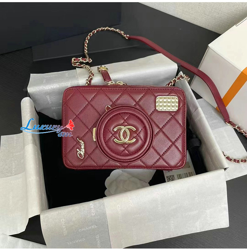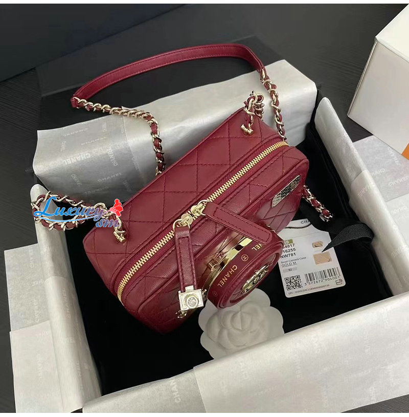 CHANEL-AS4817 샤넬 버건디 램스킨 카메라 백