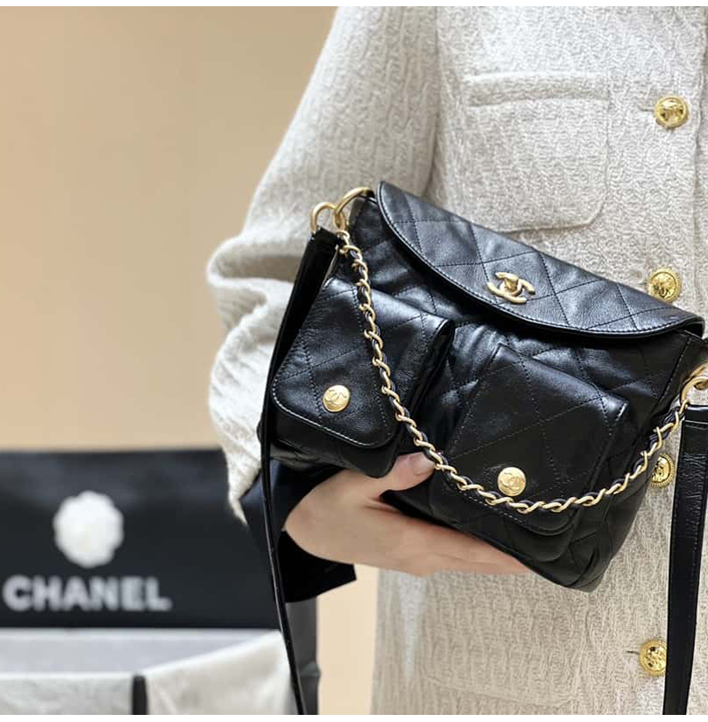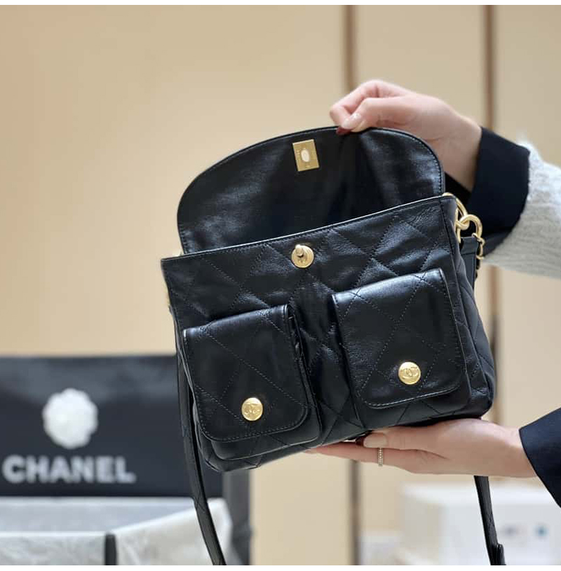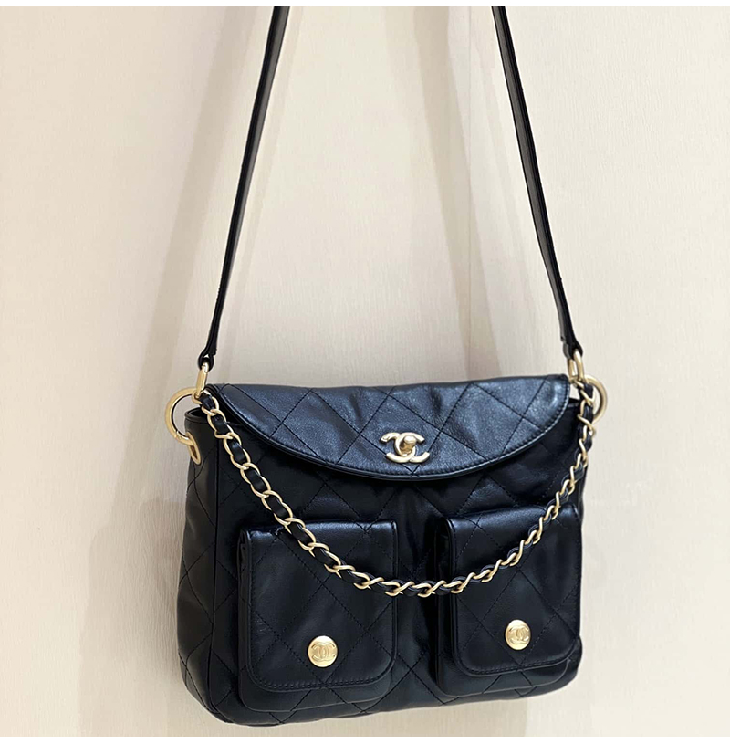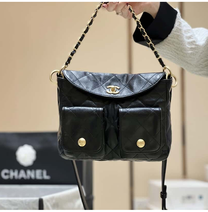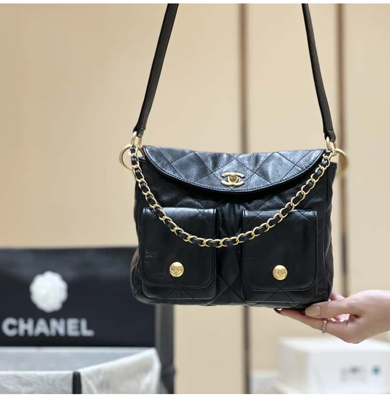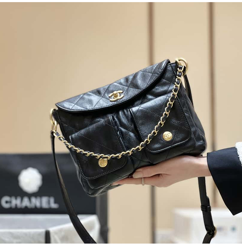 [스페셜오더]CHANEL-AS4743 샤넬 블랙 카프스킨 스몰 호보 백 24cm