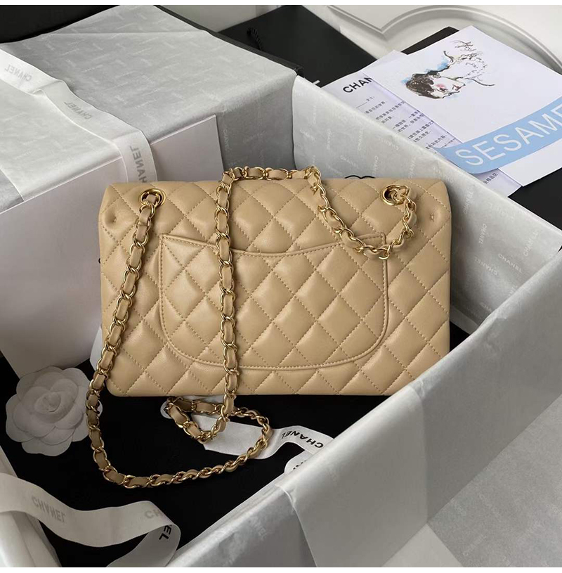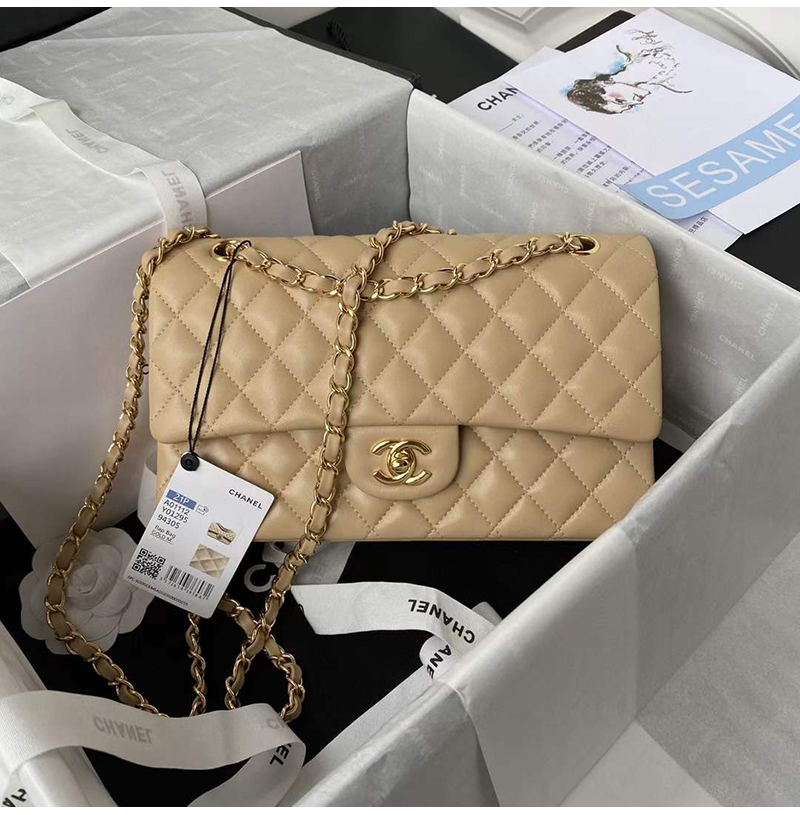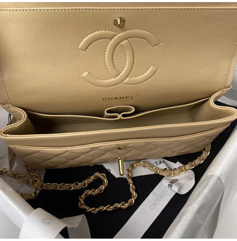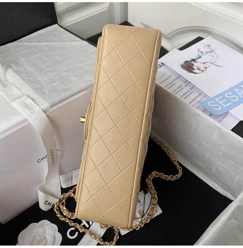 [스페셜오더]CHANEL-A01112 샤넬 베이지 램스킨 클래식 11.12 미디엄 플랩 백 25.5cm Gold-Tone Metal