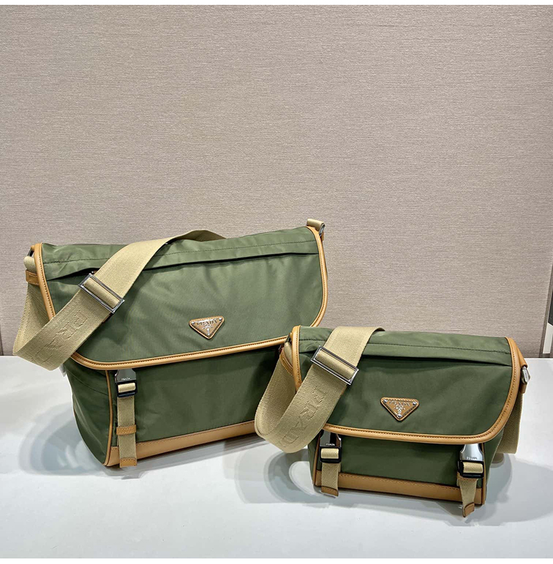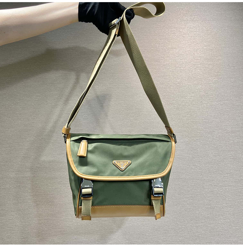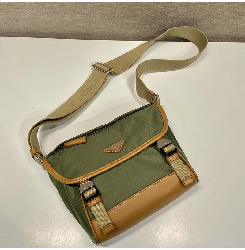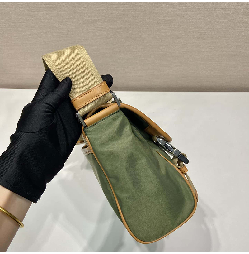 [스페셜오더]PRADA-2VD066 프라다 밀리터리/캐러멜 리나일론 및 가죽 숄더백 20cm