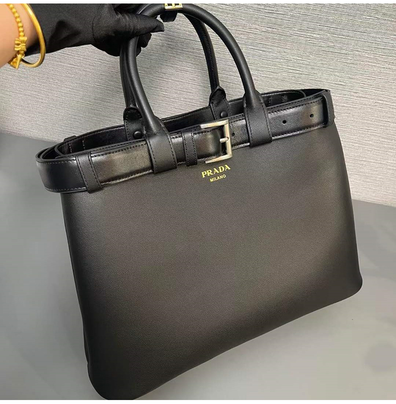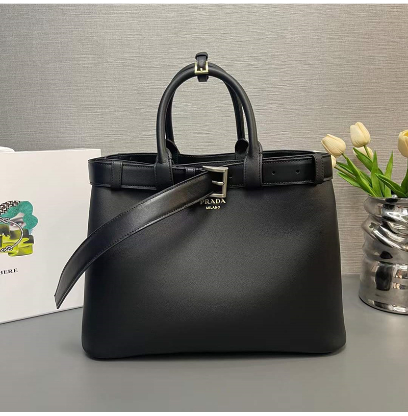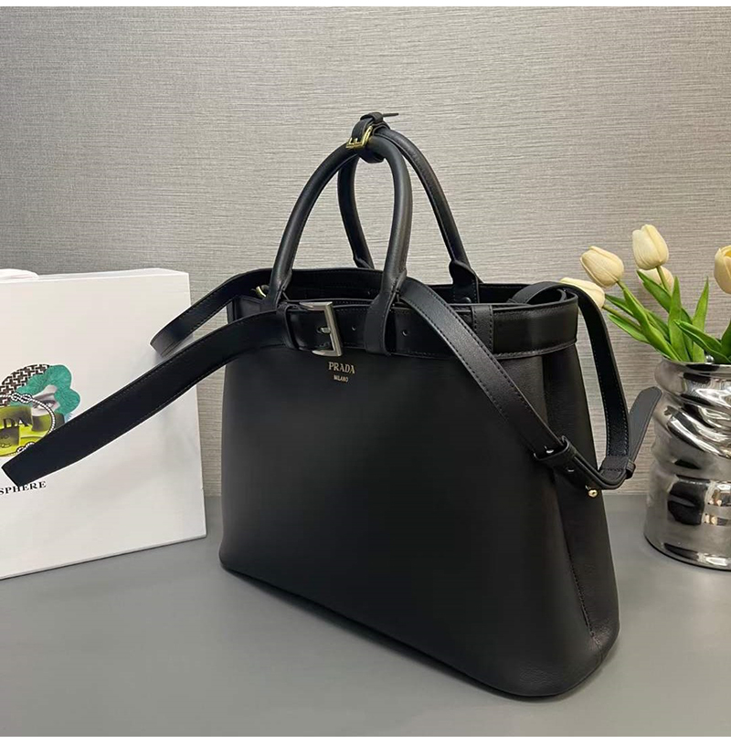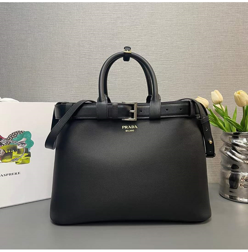 [스페셜오더]PRADA-1BA416 프라다 블랙 벨트 라지 핸드백 37cm