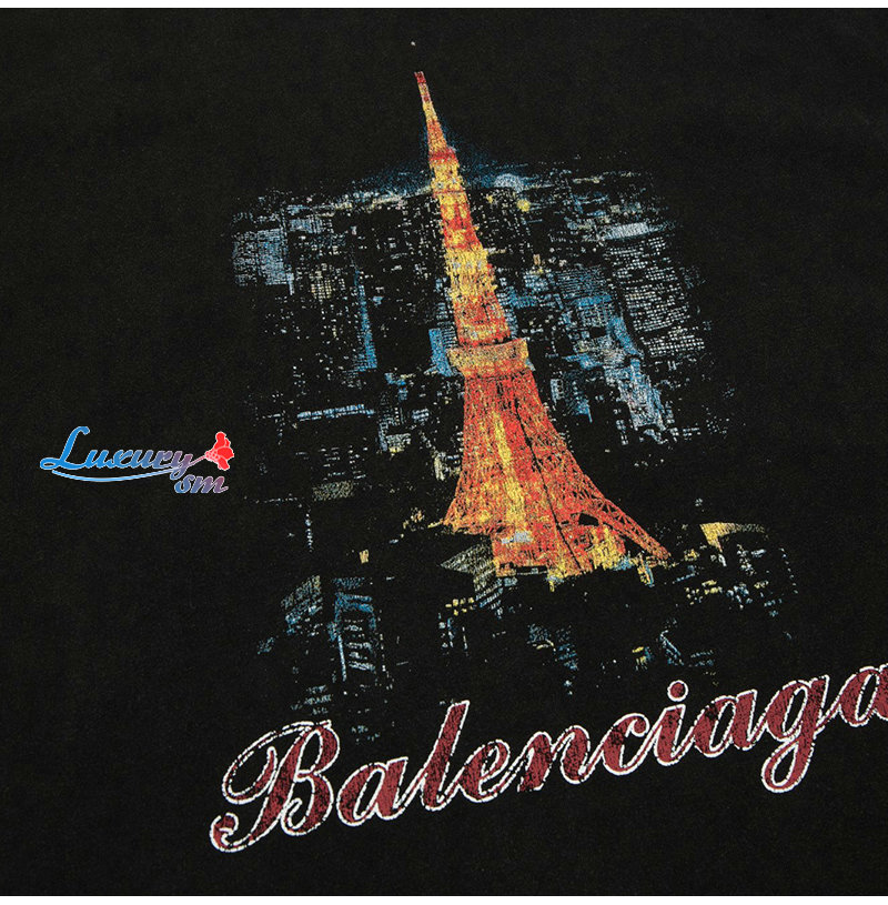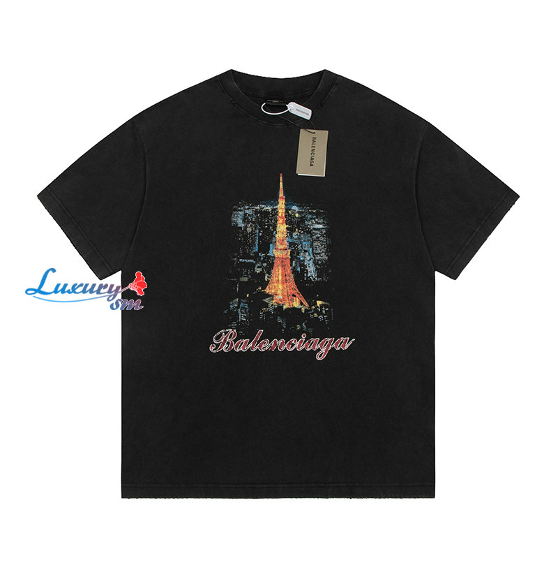 BALENCIAGA-05222 발렌시아가 블랙 프린트 장식 티셔츠 남여공용