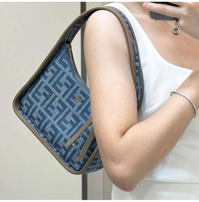 [스페셜오더]FENDI-8BS094 펜디 라이트 블루 FF 데님 펜데센스 미니 호보백 20.5cm