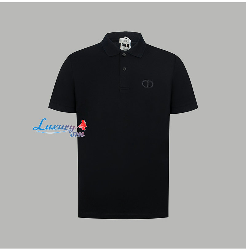DIOR-06018 디올 블랙 CD 로고 아플리케 장식 폴로 티셔츠 남성용