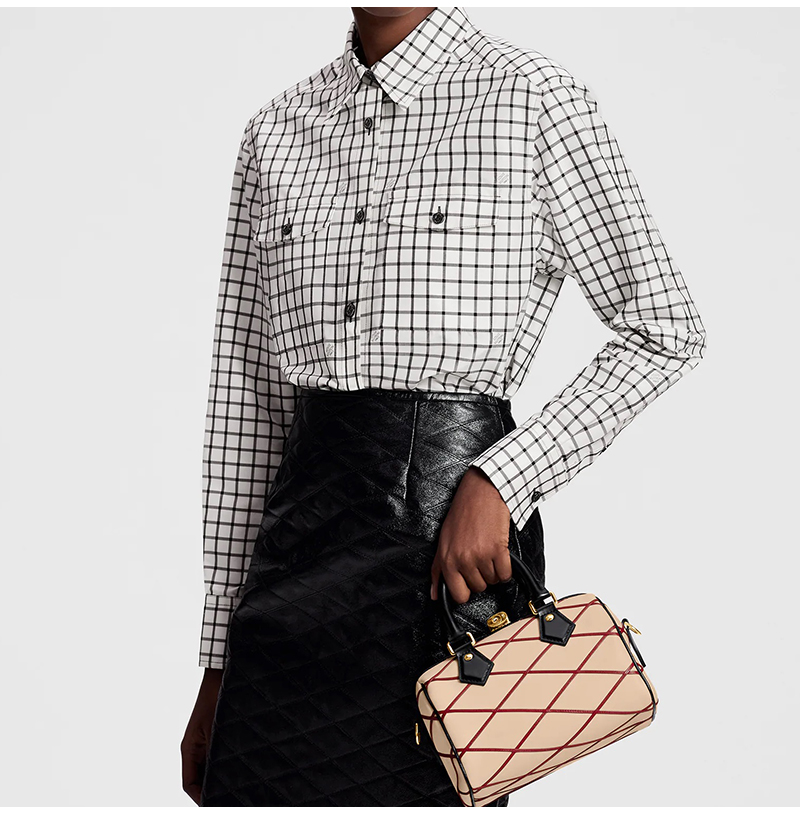 하우스의 상징적인 말타쥬 패턴이 대비를 이루는