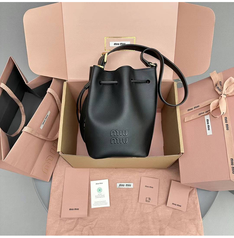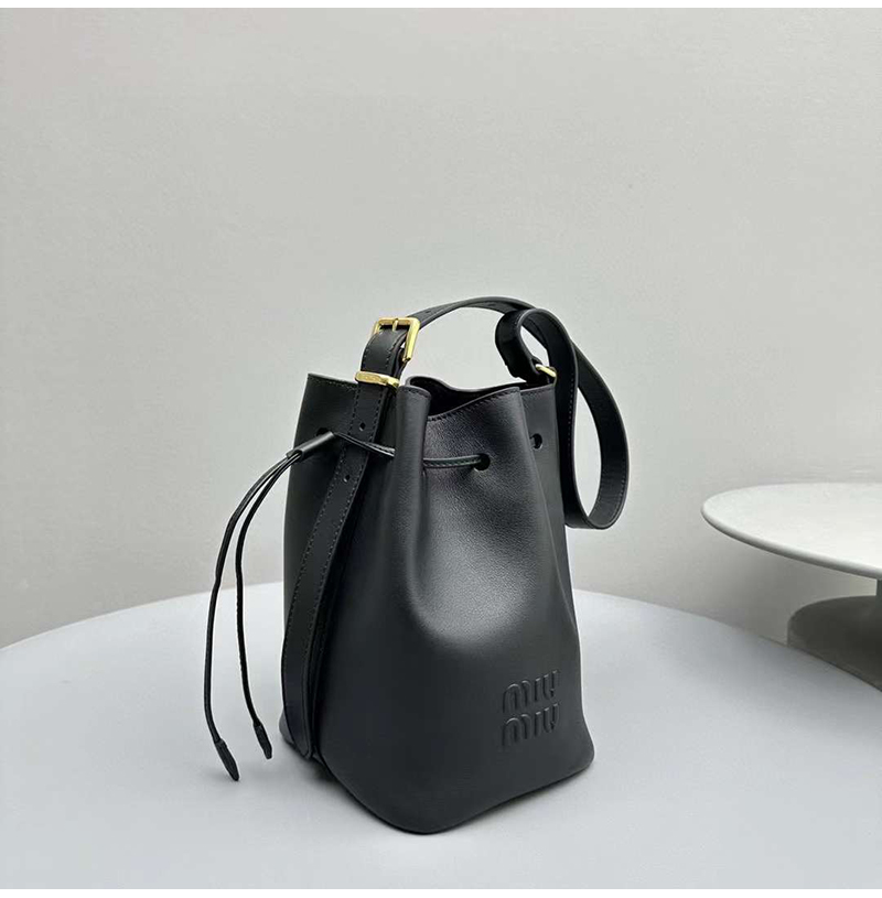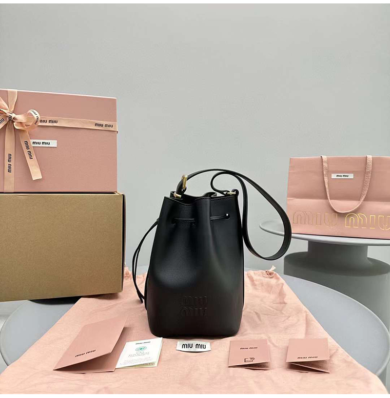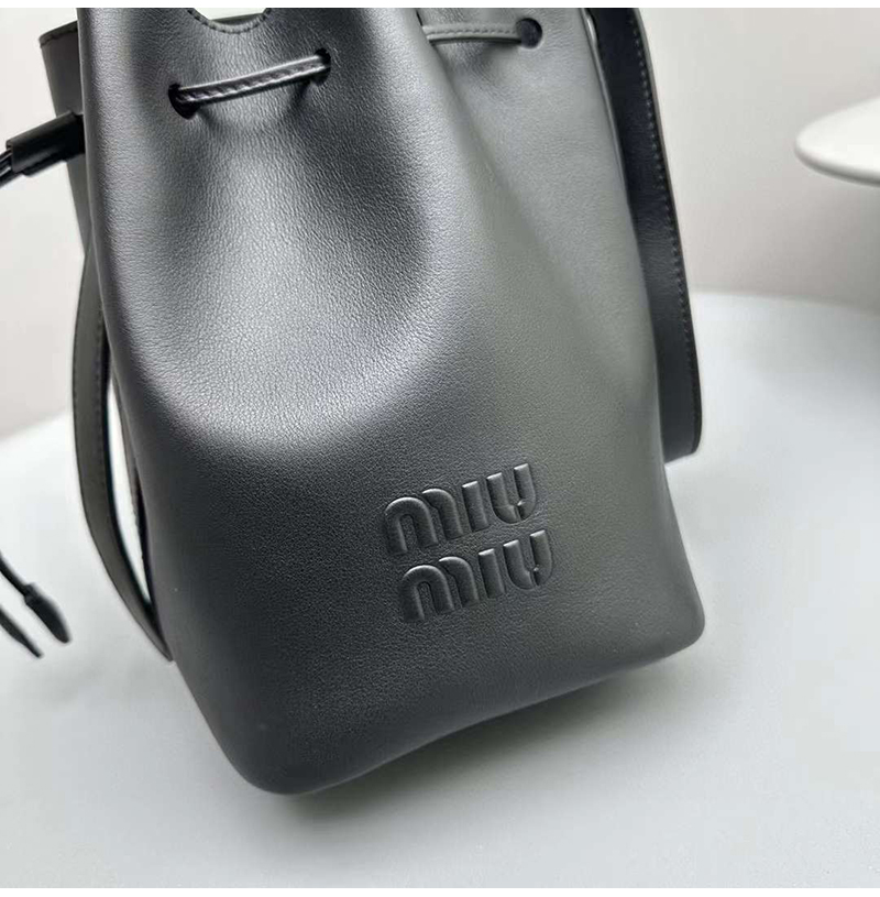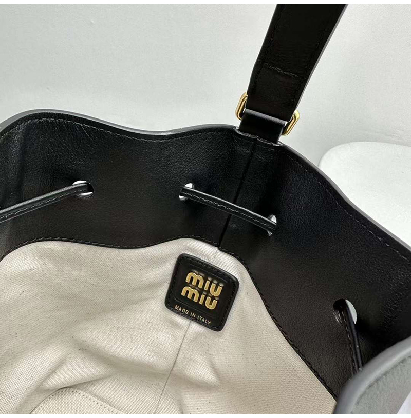 [스페셜오더]MIU MIU-5BE090 미우미우 블랙 엠보싱 로고 버킷 백 16cm