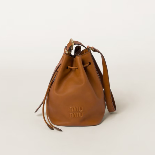 [스페셜오더]MIU MIU-5BE090 미우미우 코냑 엠보싱 로고 버킷 백 16cm