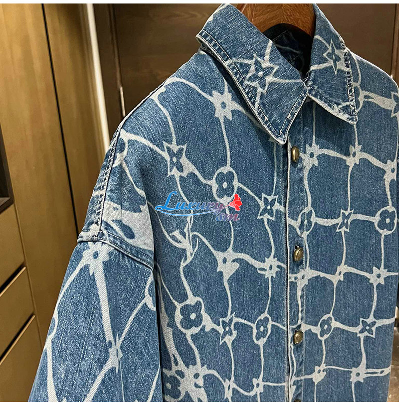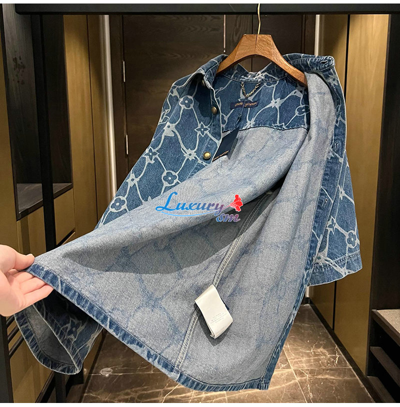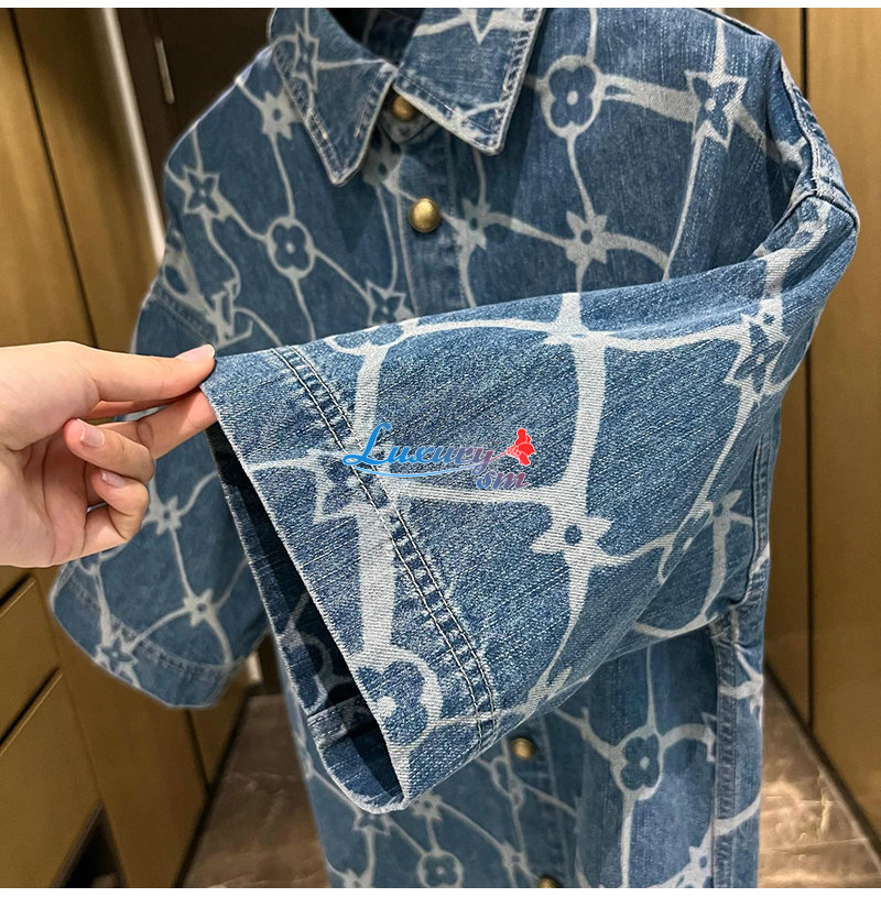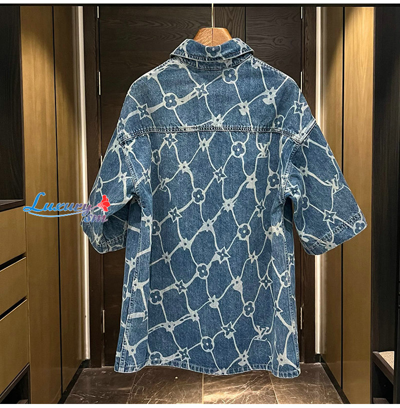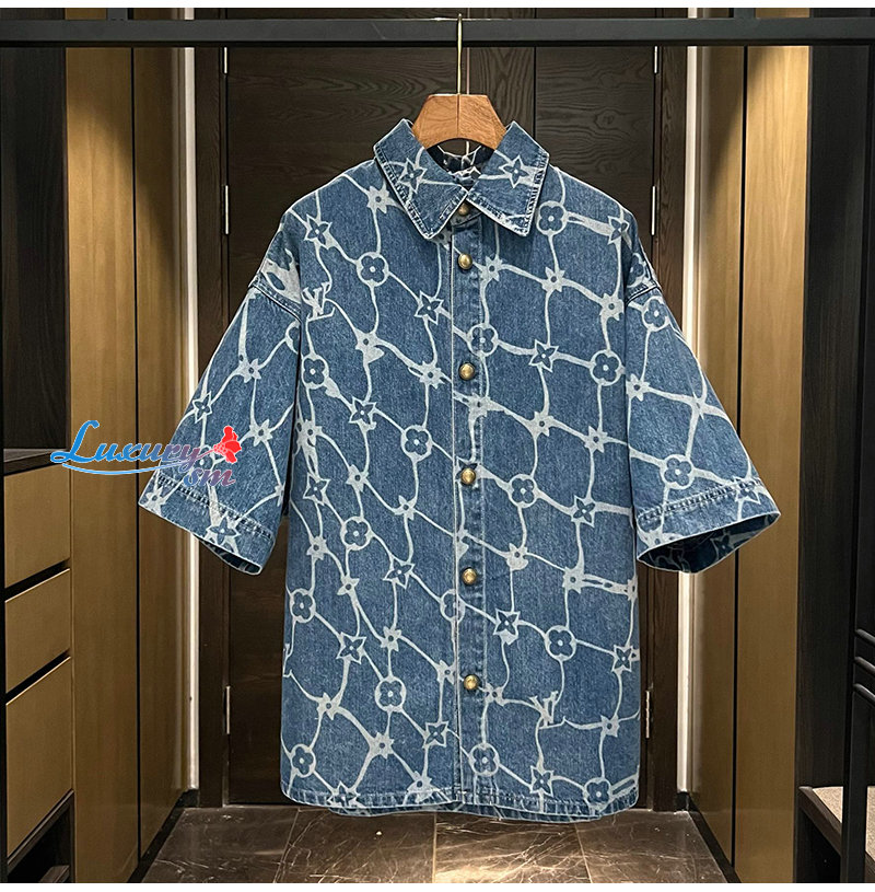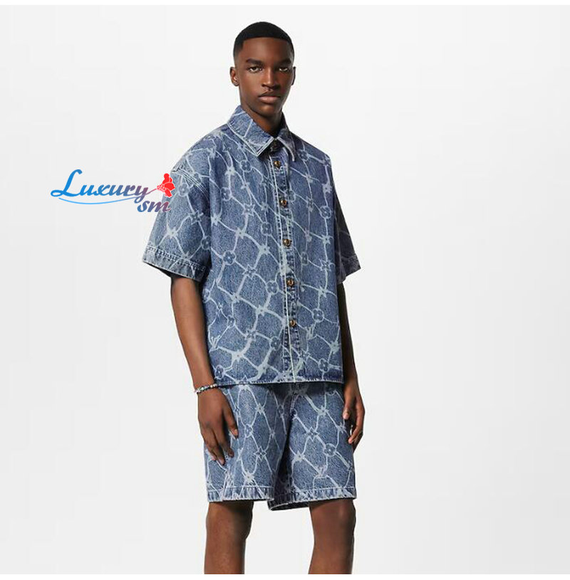 LOUIS VUITTON-1AFQZ1 루이비통 모노그램 프린티드 쇼트 슬리브드 데님 셔츠 남성용