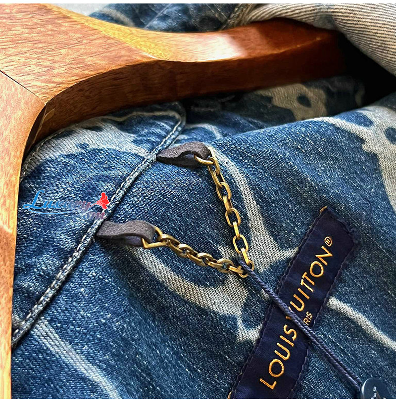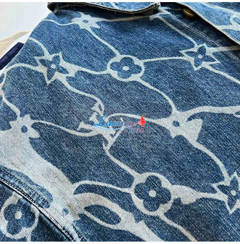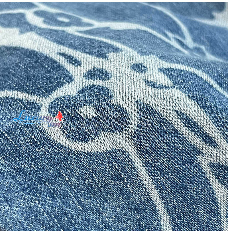워싱 처리한 인디고 면 소재 모노그램 플라워 디테