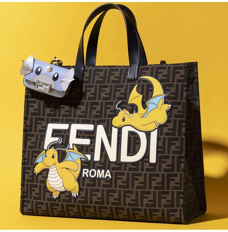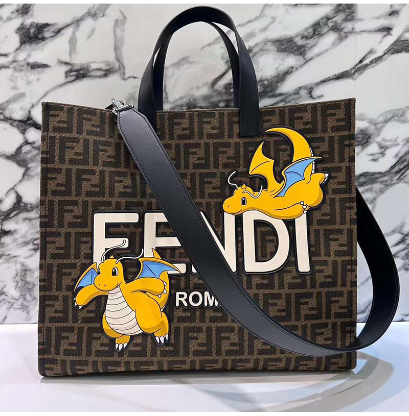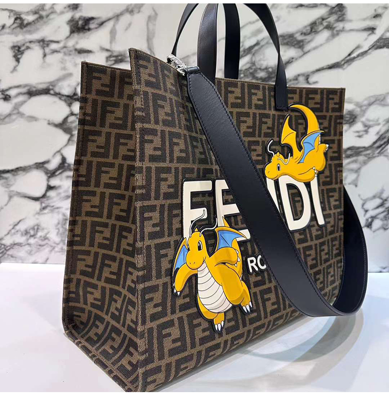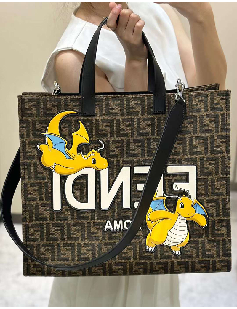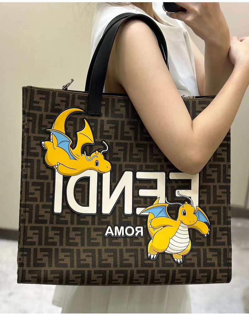 펜디x프라그먼트x포켓몬 콜라보 라지 쇼퍼 백.