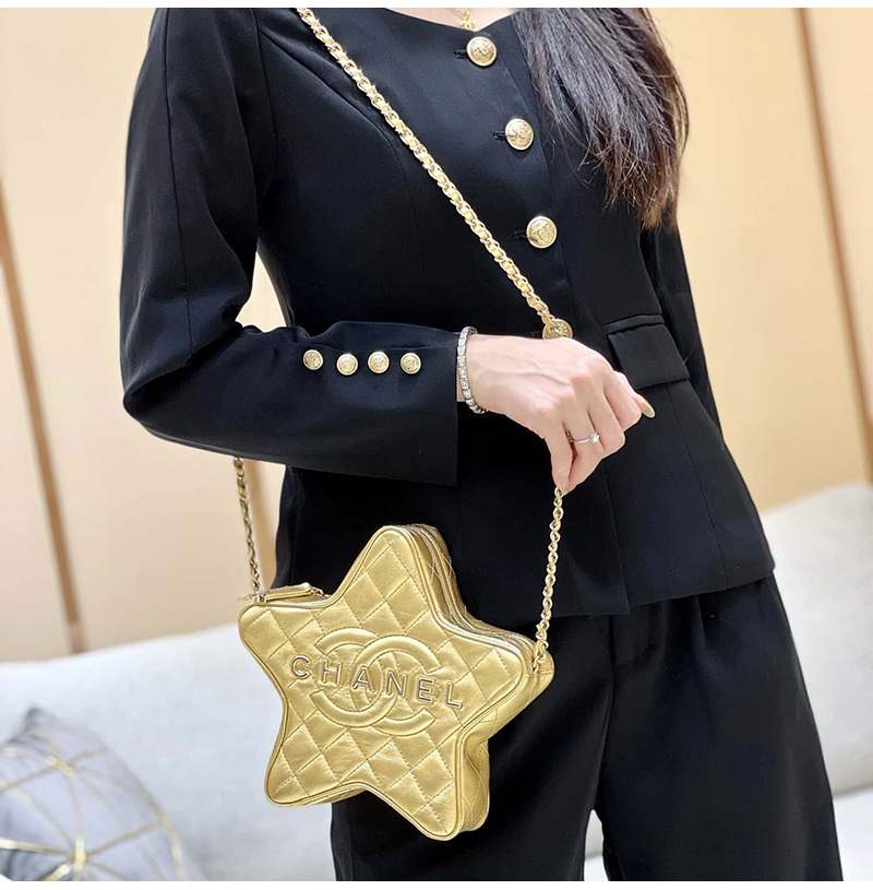[스페셜오더]CHANEL-AS4579 샤넬 24C 메탈릭 골드 램스킨 스타 핸드백 22.5cm