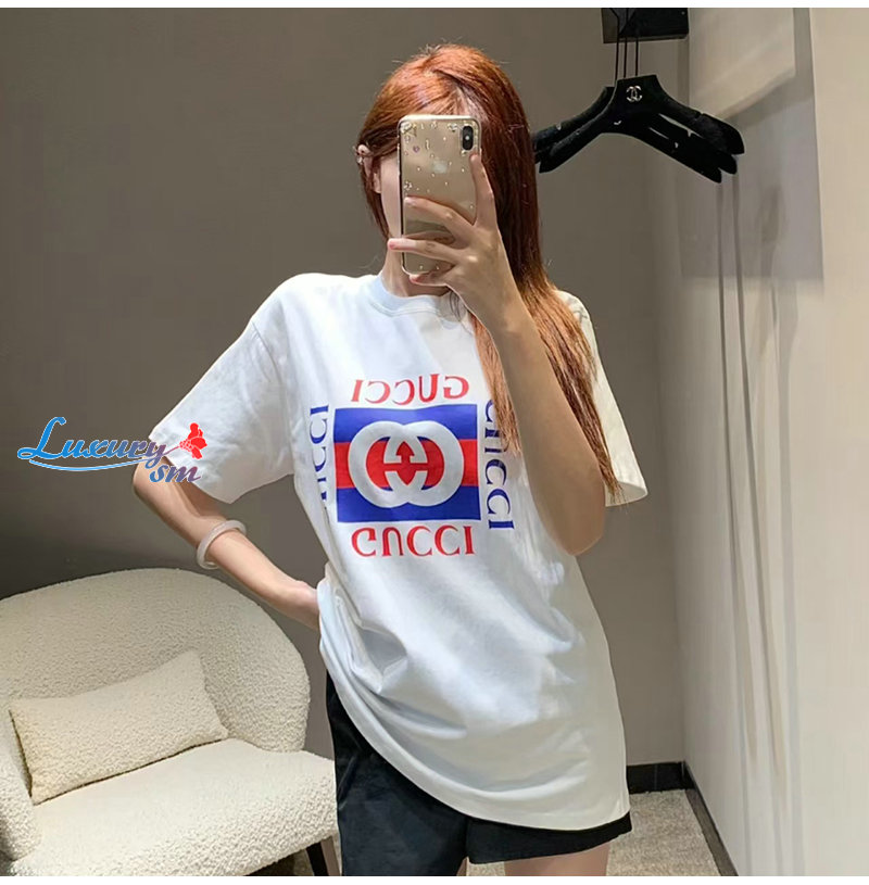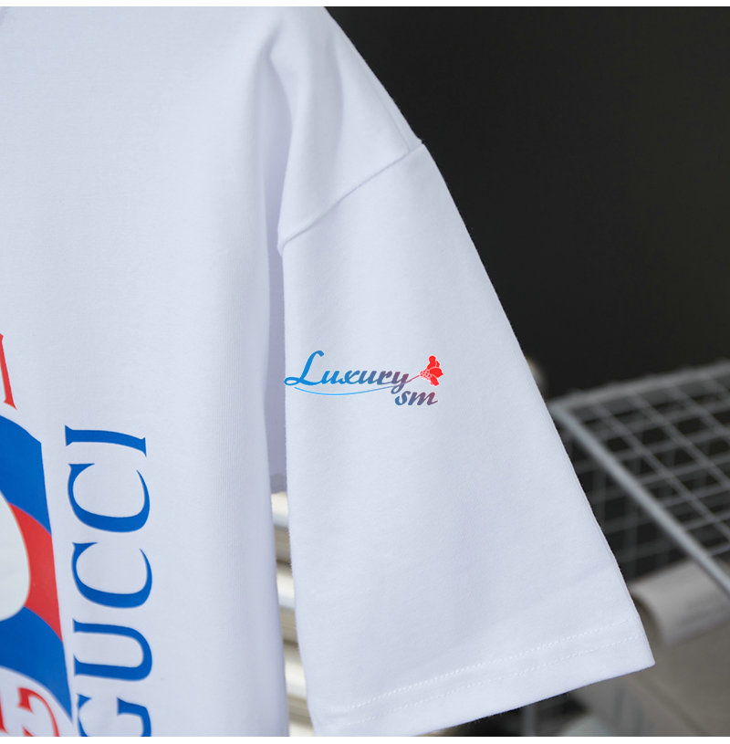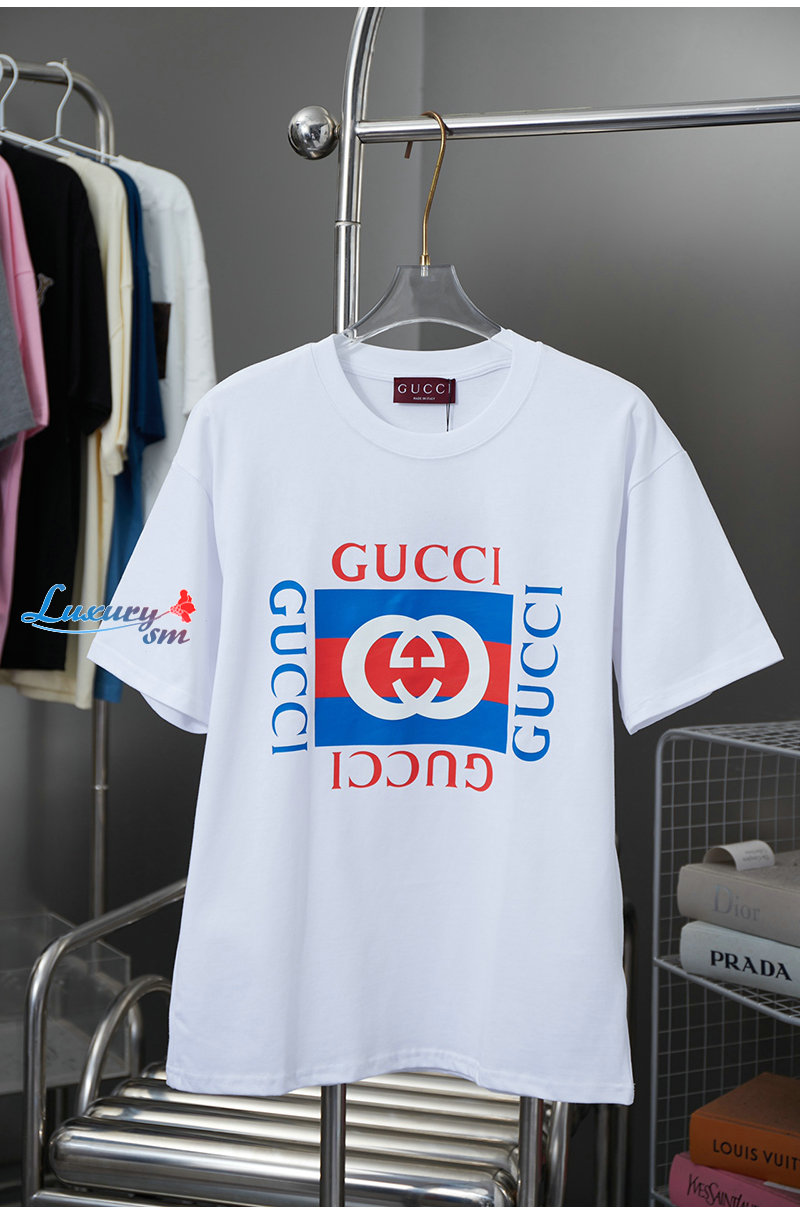 GUCCI-062313 구찌 화이트/블루 프린트 장식 티셔츠 남여공용