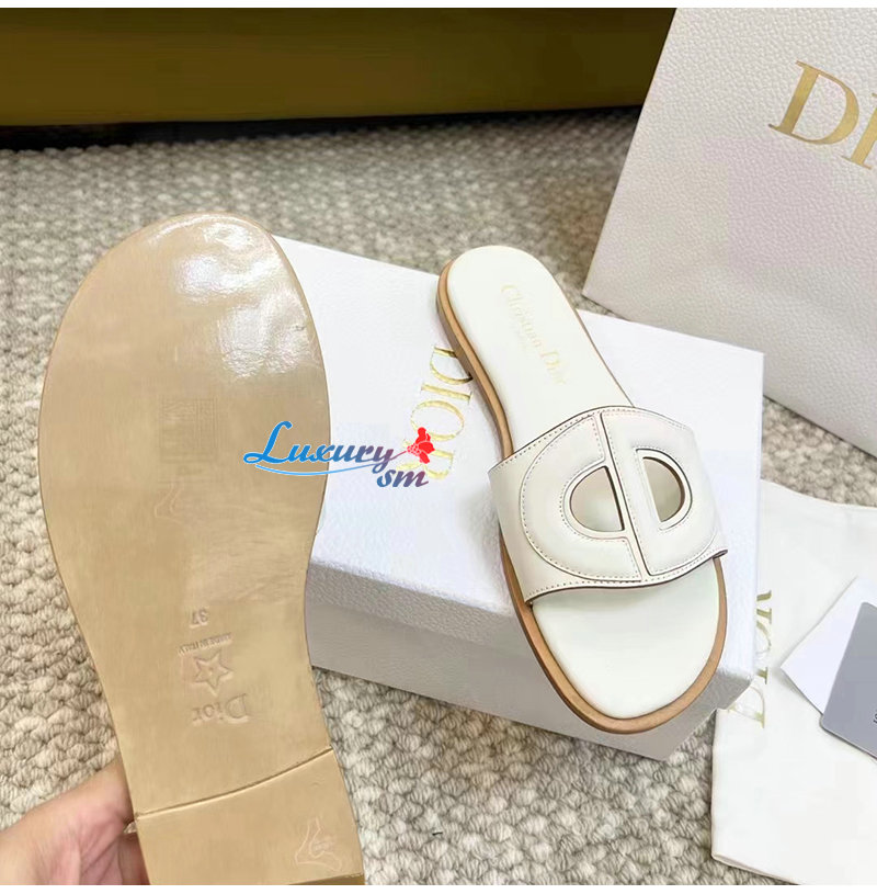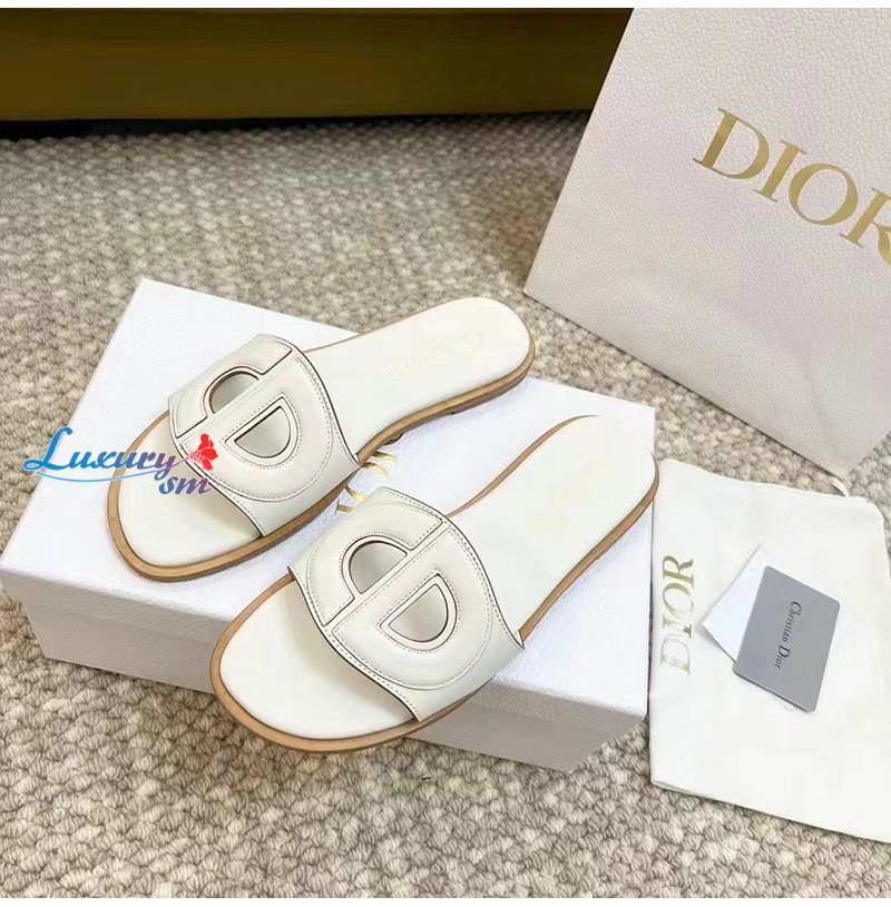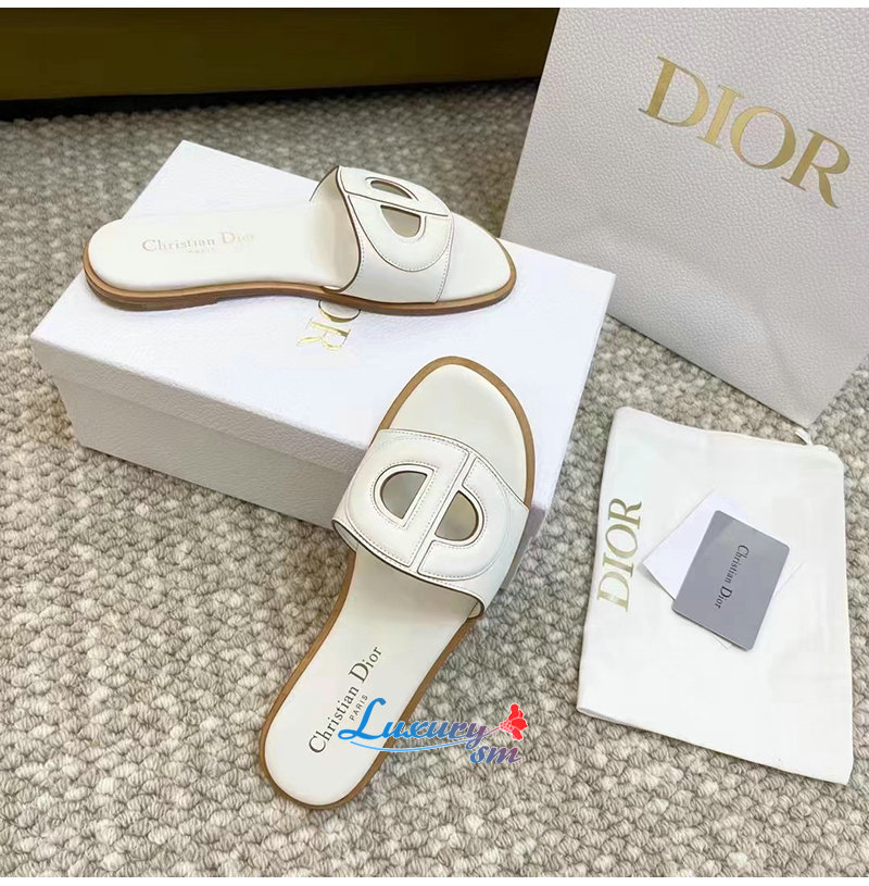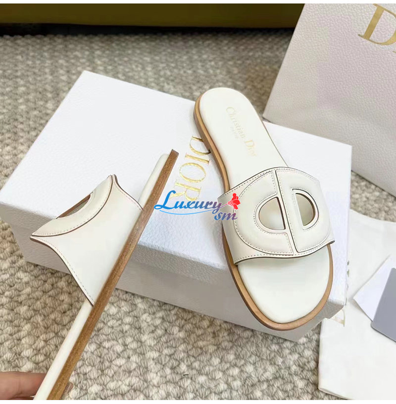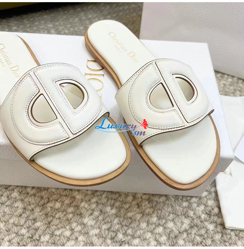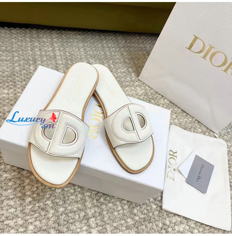 DIOR-KCO049 디올 화이트 송아지 가죽 D-Club 뮬 여성용